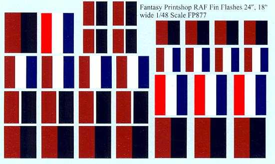 Offered for sale is a set of 1/48-scale decals for British R.A.F. Fin Flashes, made by Fantasy Printshop Decals.