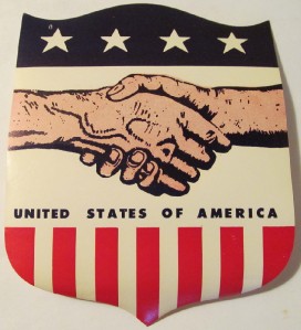 1960s United States of America Patriotic Shaking Hands Coat of Arms 6" Decal