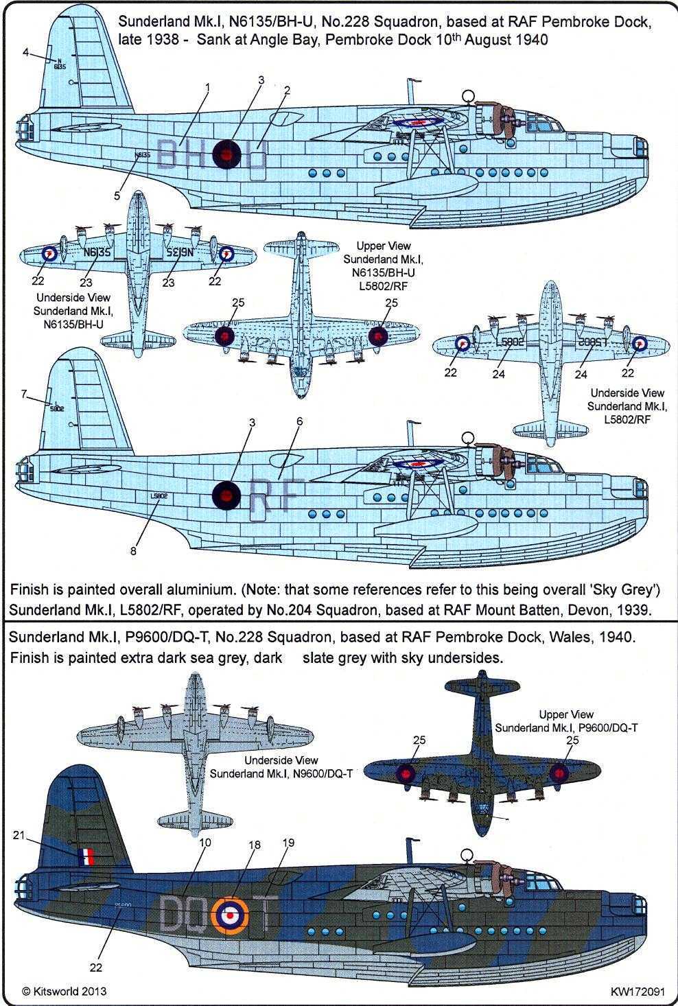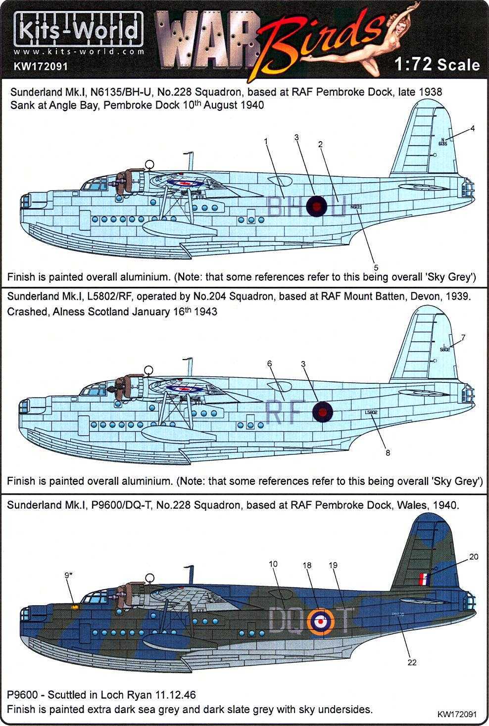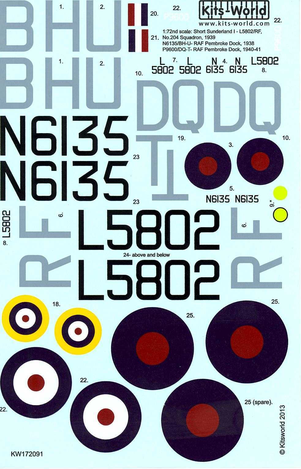 Offered for sale is a set of 1/72-scale decals for the British World War II Short Sunderland Mk.I, made by Kits World Decals.
