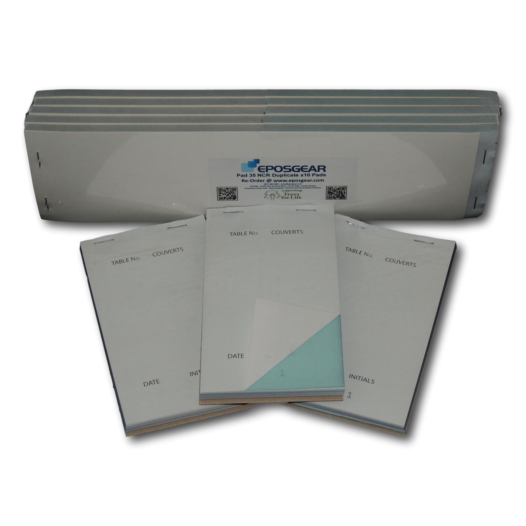 NCR Duplicate - The pages are moved on top of the included cardboard sheet and then the order is written down. This will then be transferred to the duplicate page underneath creating a copy of the order. The two copies can then be ripped out and the process repeated for the next order.