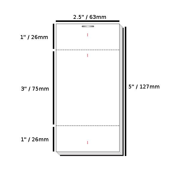 Single - Standard - 1 Perf - Length = 5.0"/12.7cm/127mm, Width = 2.5"/6.3cm/63mm