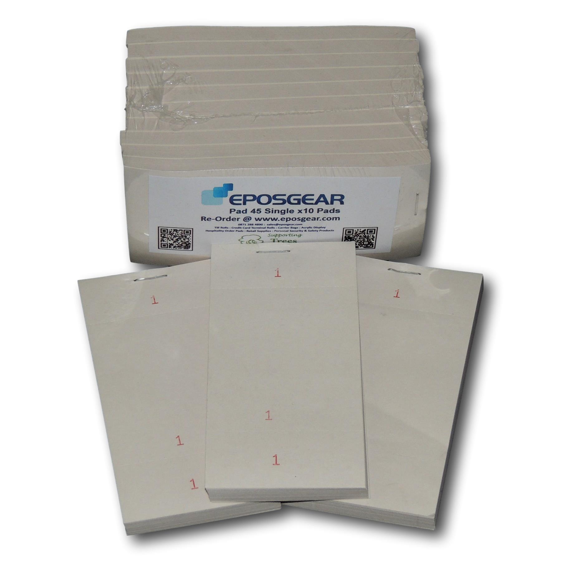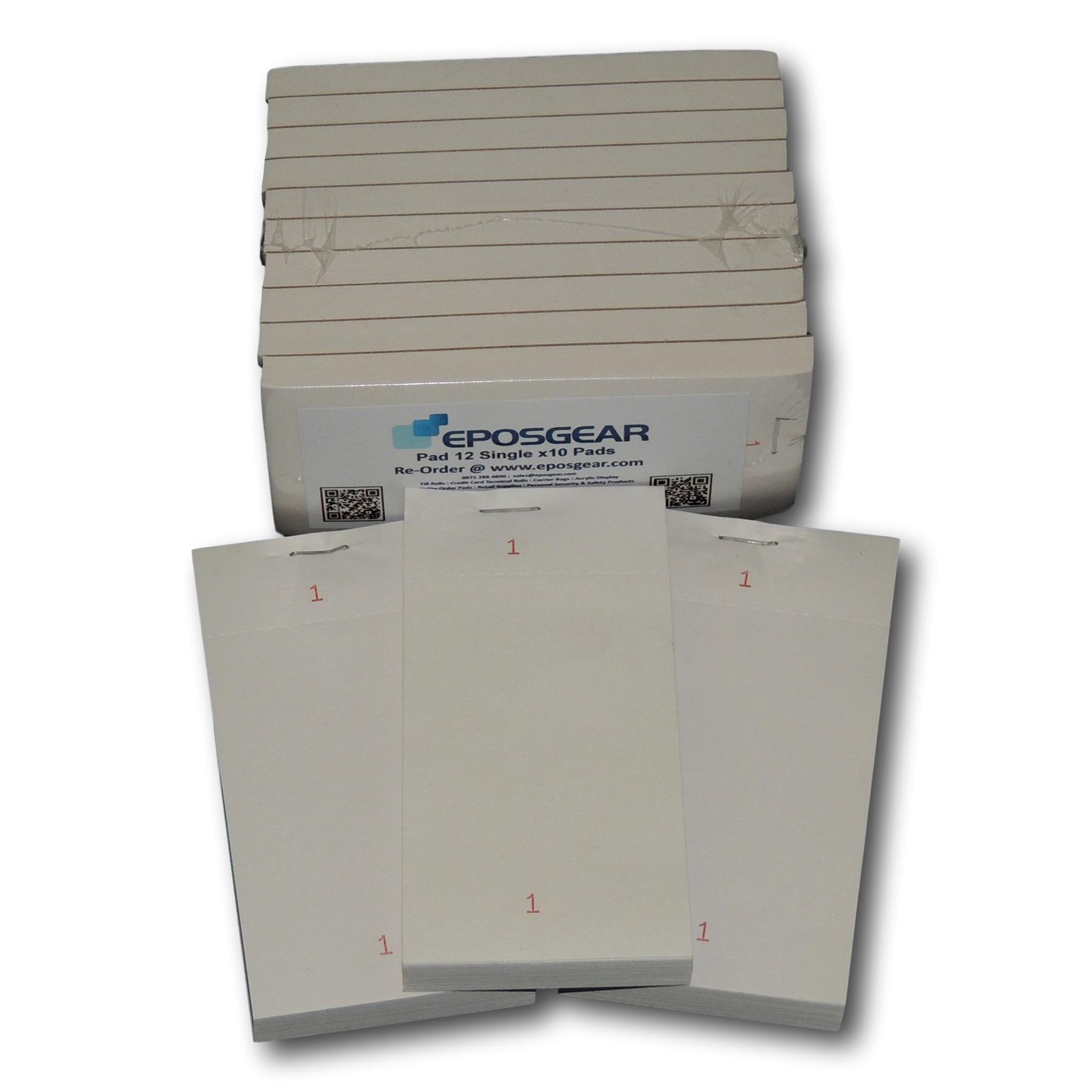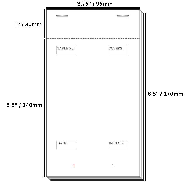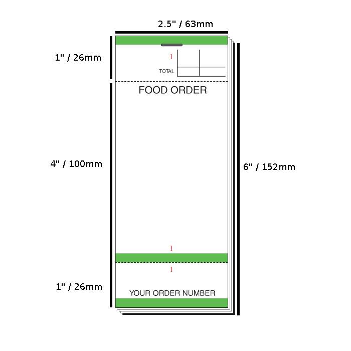 2 Perfs - These pads are single copy pads which have a tear off strip at the bottom of each sheet. Each sheet can be teared from the pad, and the bottom slip handed to the customer to indicate their order number.
