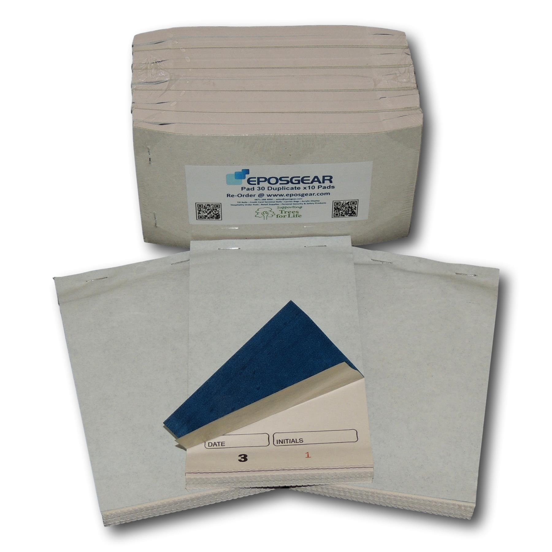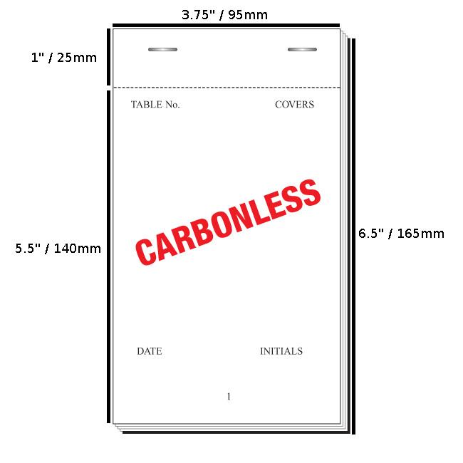 Carbon Duplicate - The page needs to be folded over the top with the carbon paper and duplicate page underneath, you would then write down the order. This will then be transferred to the duplicate page underneath creating a copy of the order. The two copies can then be ripped out and the process repeated for the next order.