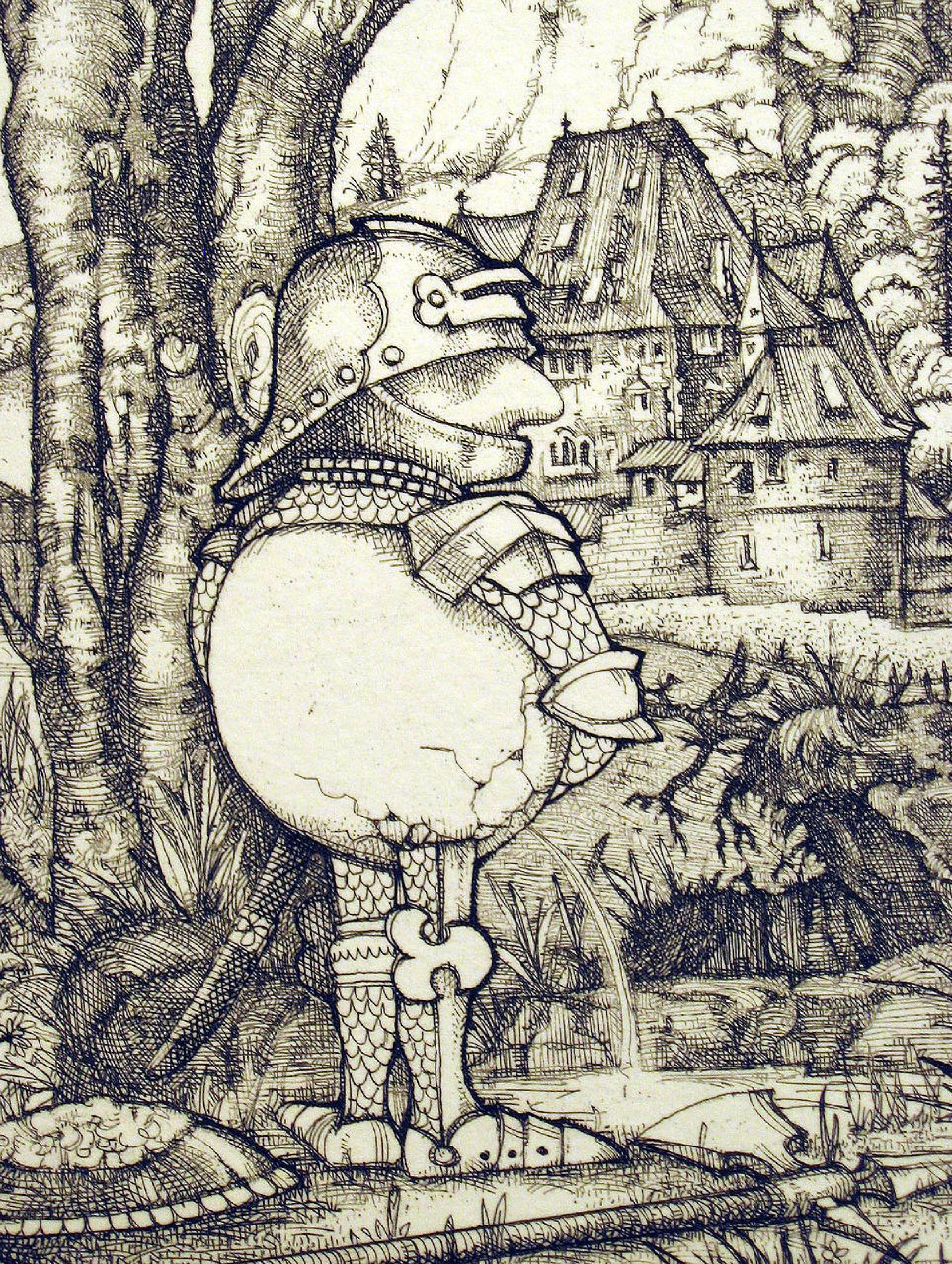Bragg's concerns start with the narrative, even anecdotal. It seems to me that his means evolve not only from Rembrandt, Fouquet and Clouet, Goya and Roger van de Weyden, but from Voltaire, Thoreau, Brecht, dada, Arthur Szyck, Jung and most of all, the almost unbelievable Strangelovesque absurdities of today's events.