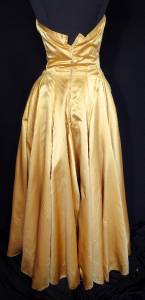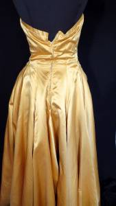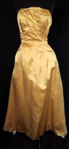 RARE VINTAGE LONG 1950'S-1960'S GOLD SILK SATIN STAPLESS EVENING GOWN