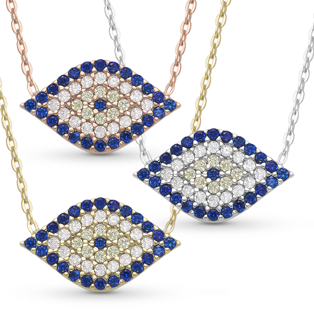 The featured necklaces are cast in 925 sterling silver and showcase evil eye charms paved with cubic zirconia crystals. The charms are then attached to thin cable chains finished with spring ring clasps & 2-inch extender chains to nicely dangle each of them around your neck.