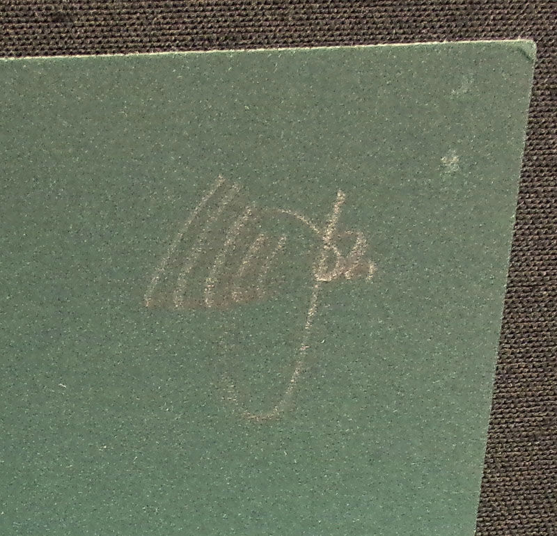 Condition: Good. There are 2 small marks by the signature and the bottom right corner is slightly creased.