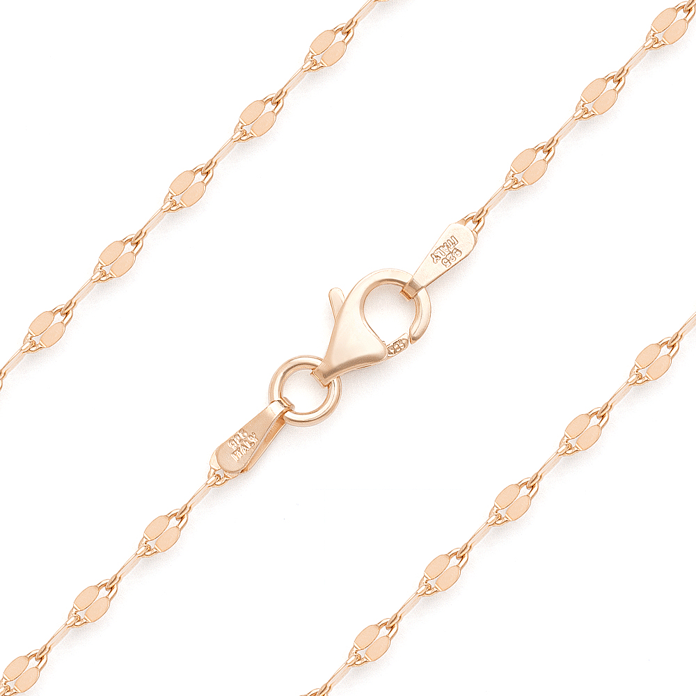 2.2mm Diamond-Cut Flat Coffee Link Chain Necklace in .925 Sterling Silver w/ 14k Rose Gold Plating