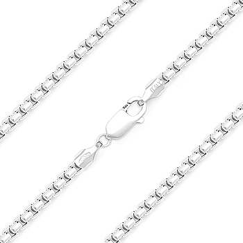 1.5mm Rounded Mirror-Box Link Italian Chain Necklace in .925 Sterling Silver w/ Rhodium