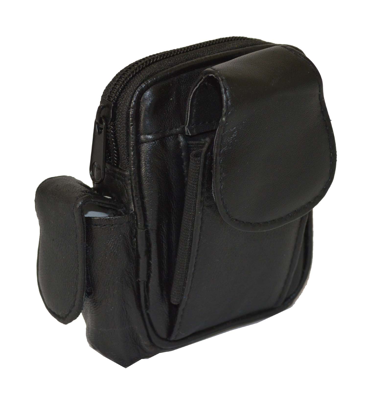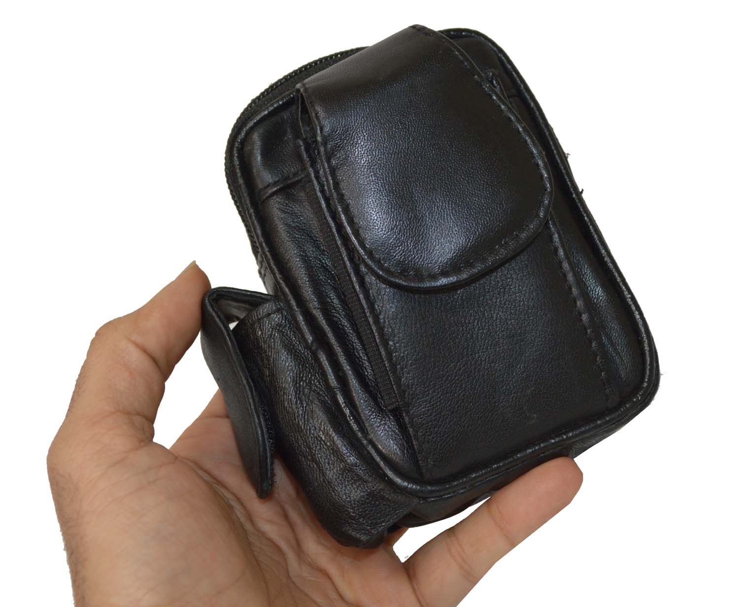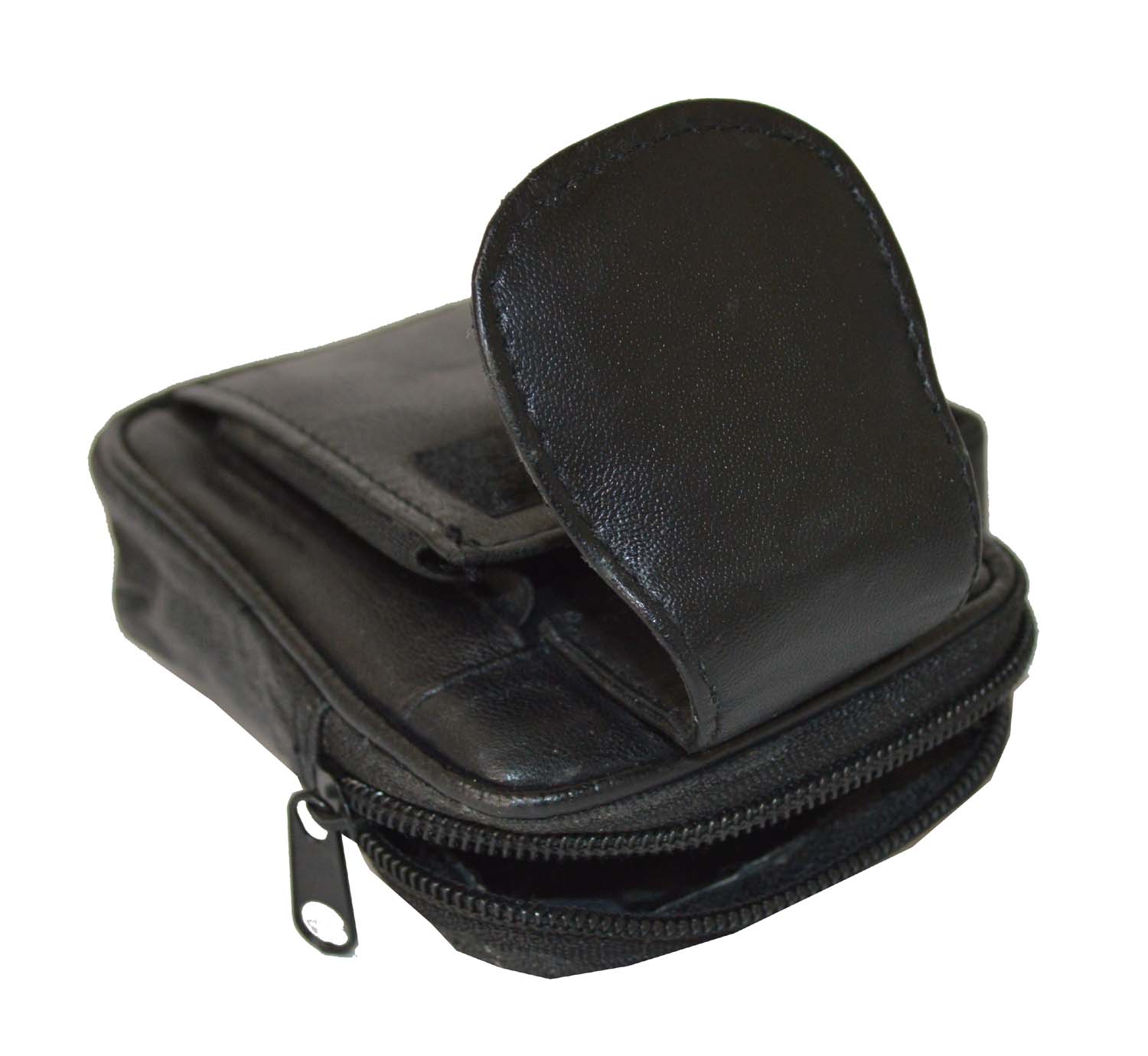 A Genuine Leather Cigarette Case Holder with Lighter pocket and Cell Phone Pocket. This case has a zipper pocket for cigarettes. It has a lighter pockets on the left side. It has a cell phone pocket in the front. This pouch can be worn on your belt as it does have a belt loop at the back. It is approx 4.1/2" x 3.2/4", when closed. Very hard to find. A REALLY GREAT BUY.