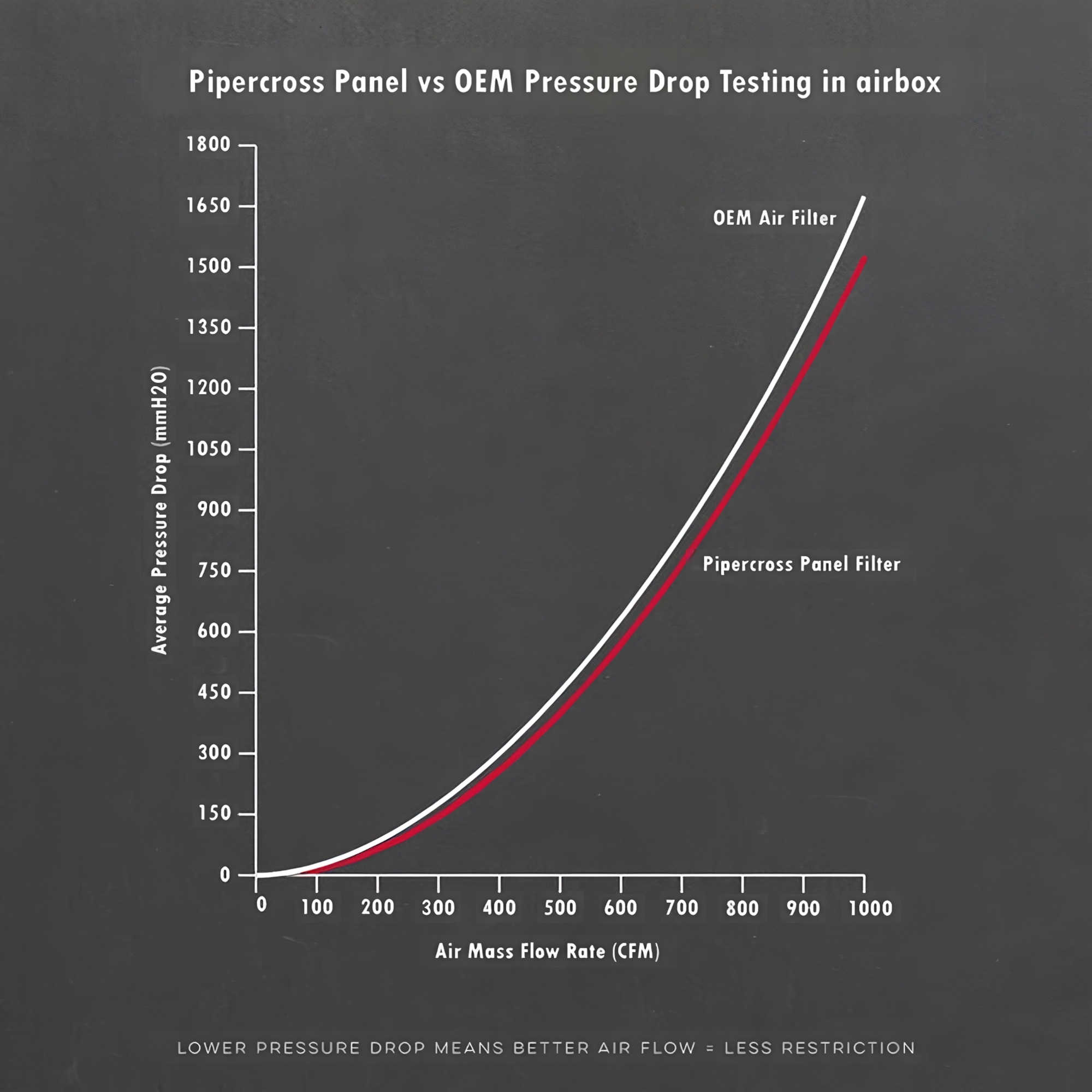 **30% higher airflow is quoted in comparison with equivalent paper element. Lifetime warranty applies when cleaned and oiled with Pipercross cleaning and re-oiling products. **