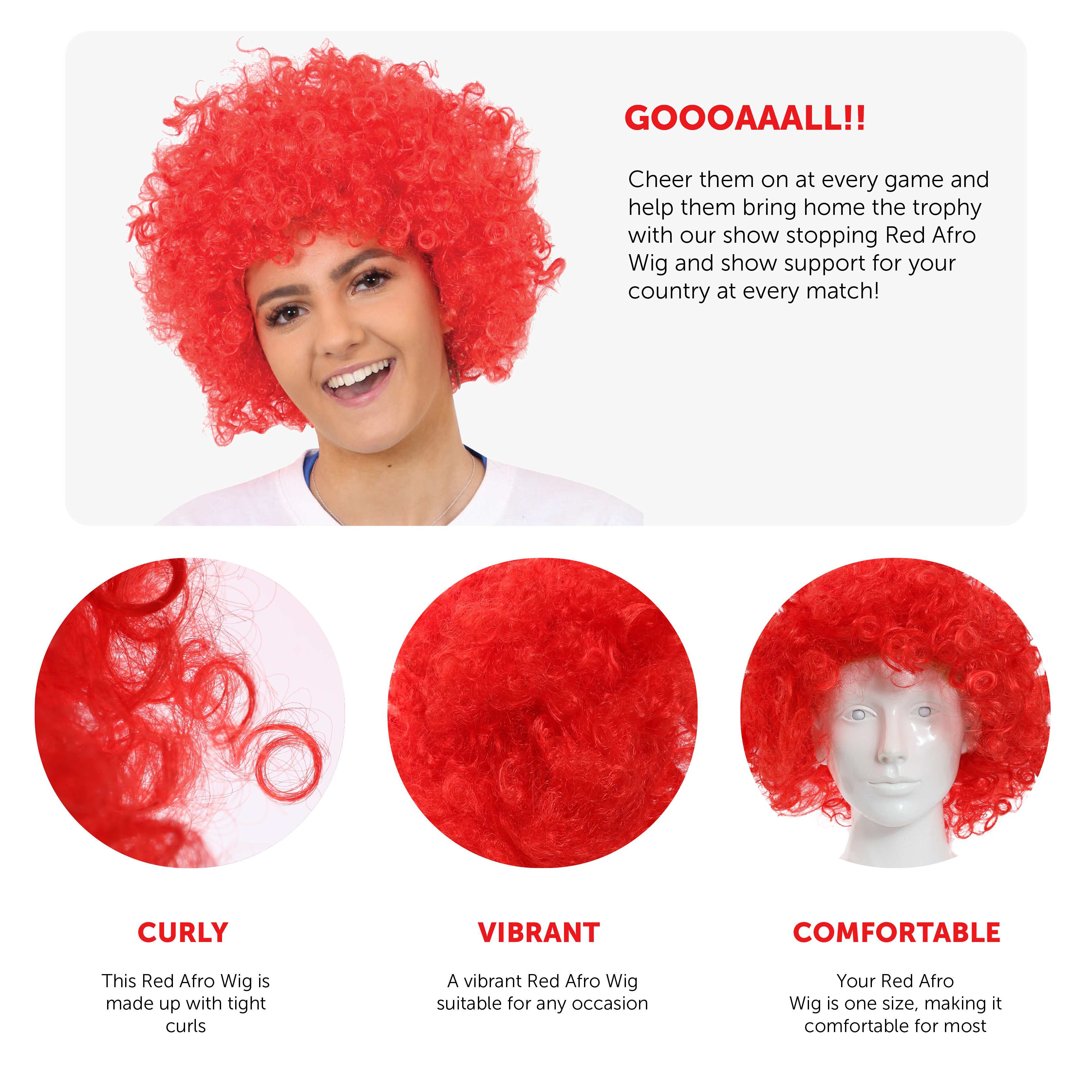 A EASY TO WEAR RED CURLY AFRO WIG.