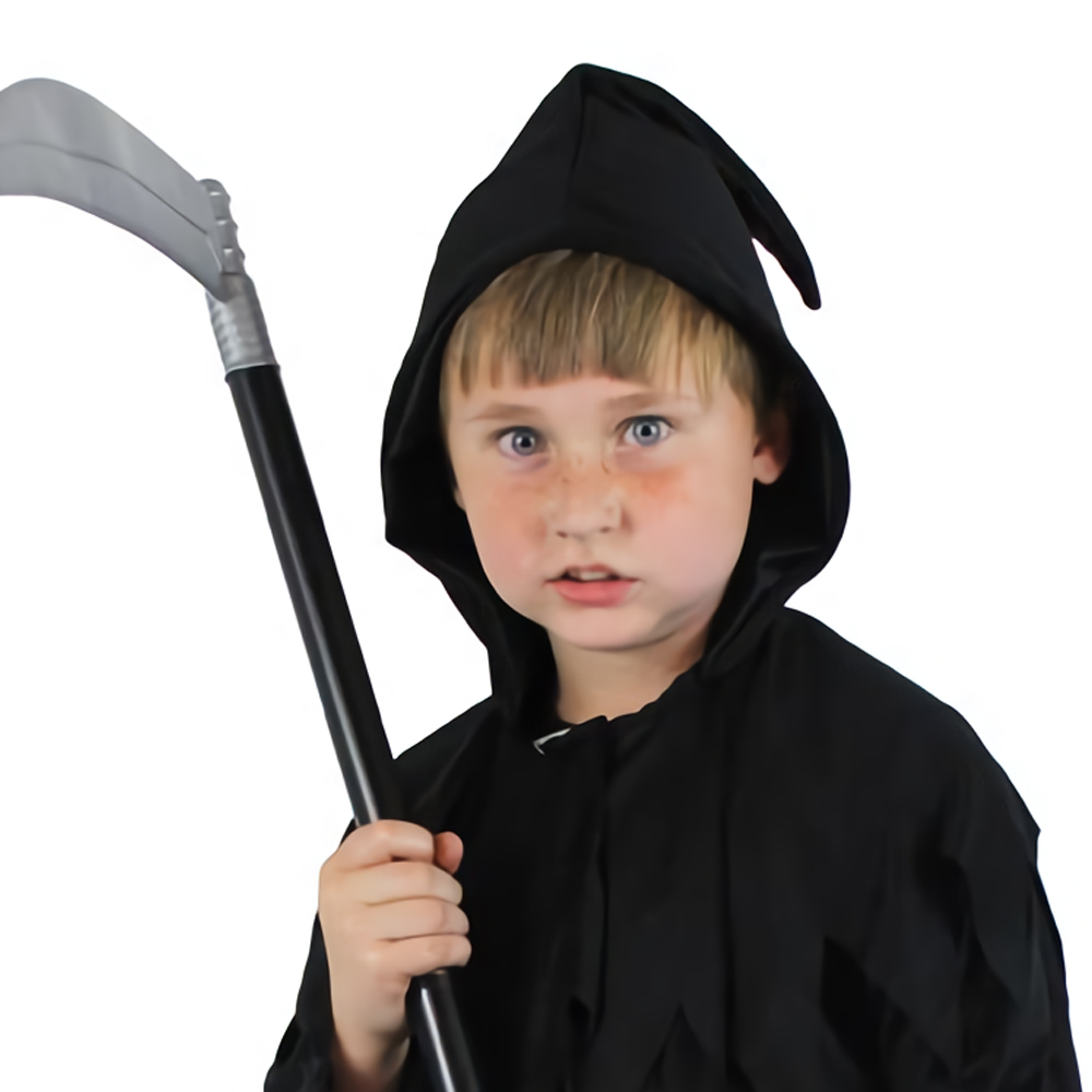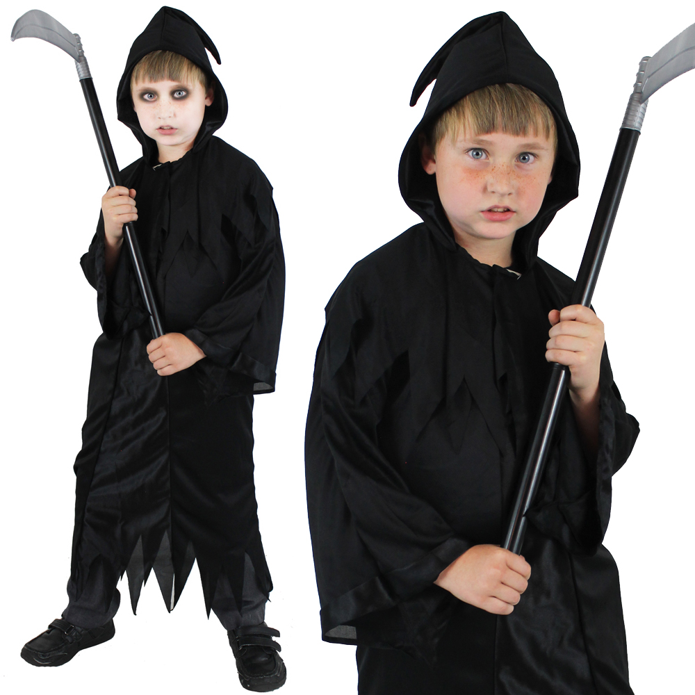 CHILDS REAPER COSTUME WITH SCYHE AND FACEPAINT