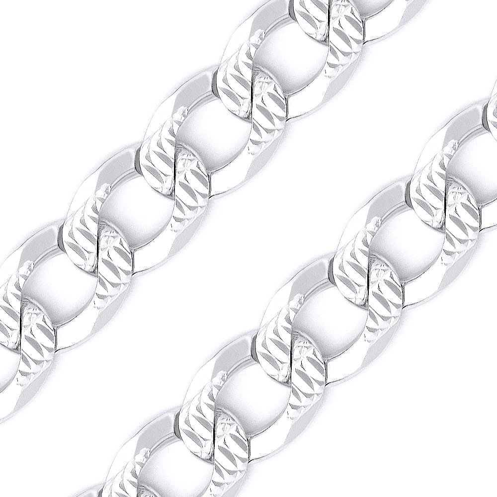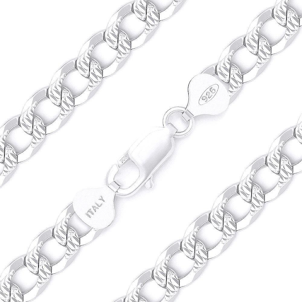 8.6mm Cuban / Curb Link D-Cut Pave Italian Chain Necklace in .925 Sterling Silver