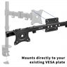 Create double the viewing experience with the VESA Adapter Bracket for 2 Monitor Screens (MOUNT-VW02A) from VIVO! This adapter bracket is designed to connect to a VESA single monitor mount so you can mount two screens (weighing up to 22 pounds each) rather than one (Please note that MOUNT-VW02A does not come with the stand/base or VESA plate which must be purchased separately). Monitors are mounted on a curved rail that can be moved from side to side without any tools and can be tilted 45 degrees in each direction to create proper ergonomic viewing angles. Open slots at the top of the mounting bracket make attaching your monitors incredibly easy. Cable clips are included on each side of the mount to keep cords organized and protected. This curved bracket is simple to assemble, features VESA 75x75mm and 100x100mm hole patterns, and comes with all mounting hardware.