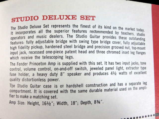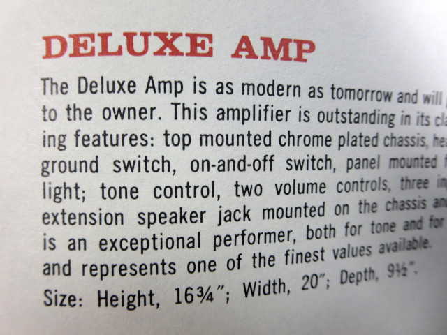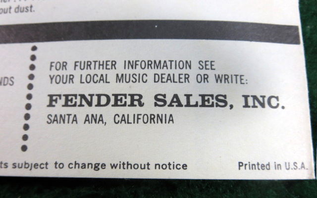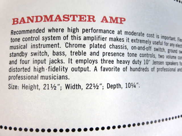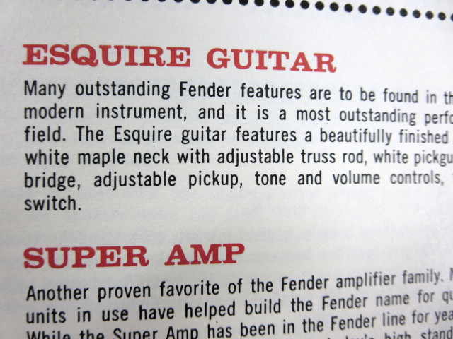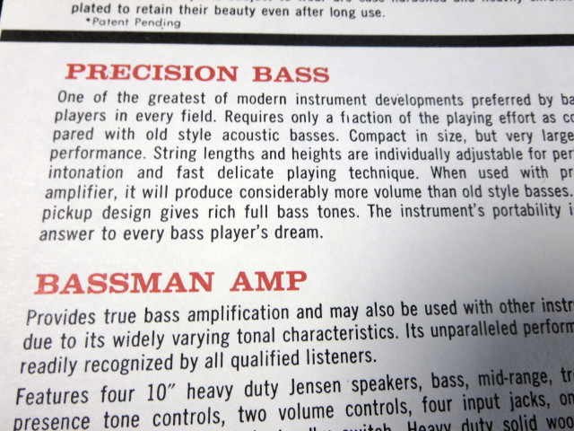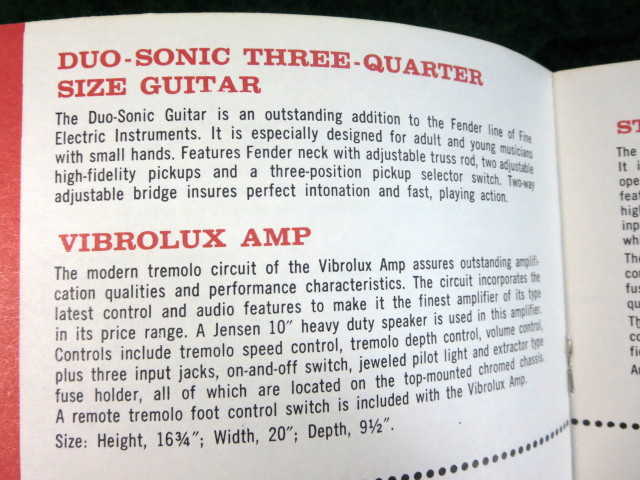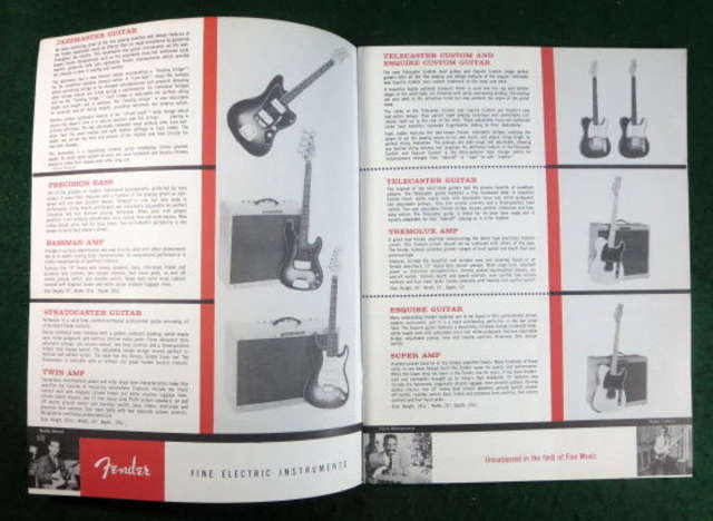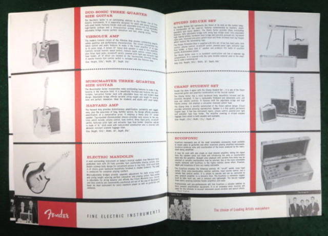 This is an authorized vintage reprint of the 1959 Fender product brochure/catalog. These were reprinted by Vintage Paper in the 1980's with permission from Fender Musical Instruments. It is printed on high quality paper like the original. I believe these were also given away by Downbeat magazine to their subscribers as a reprint of the popular catalog.