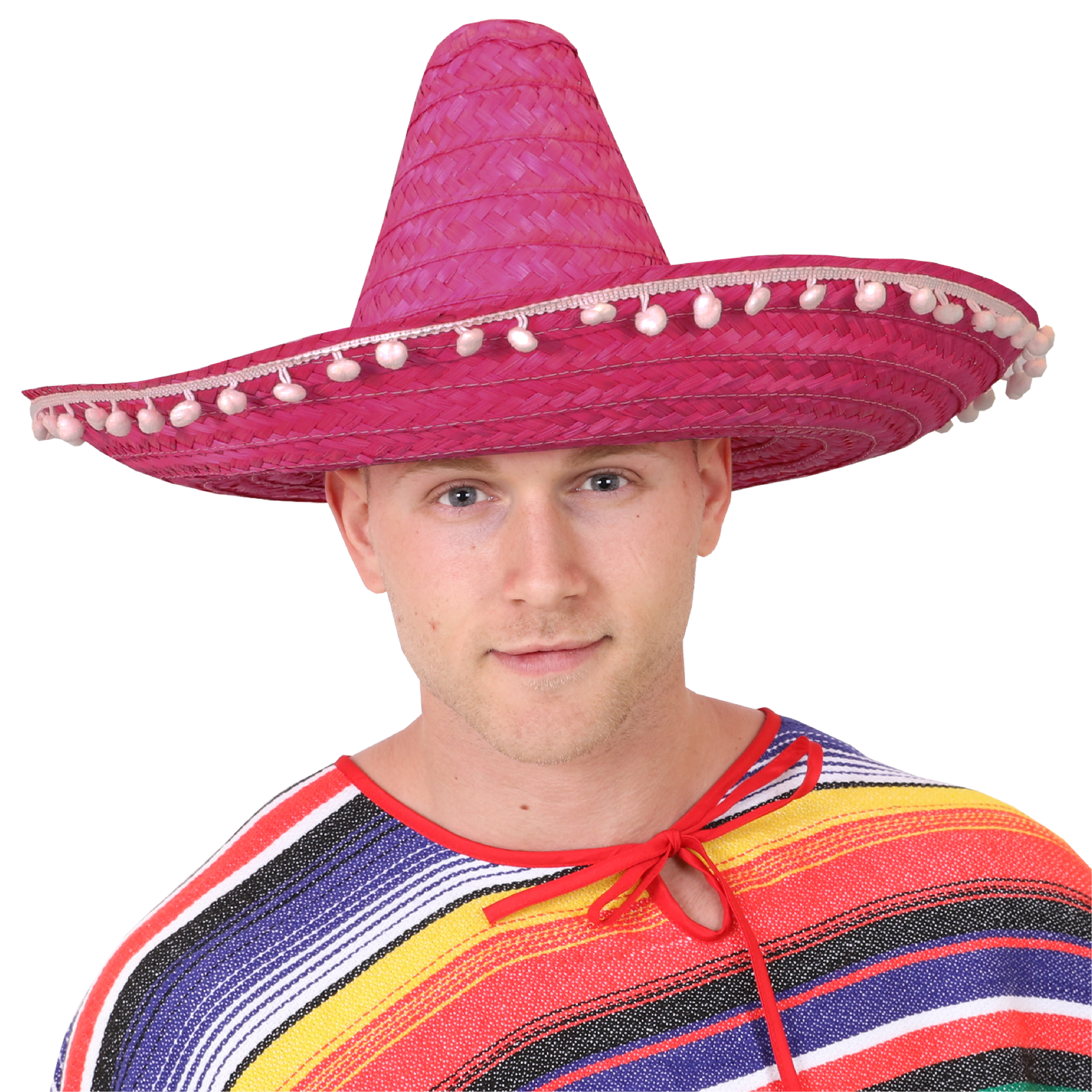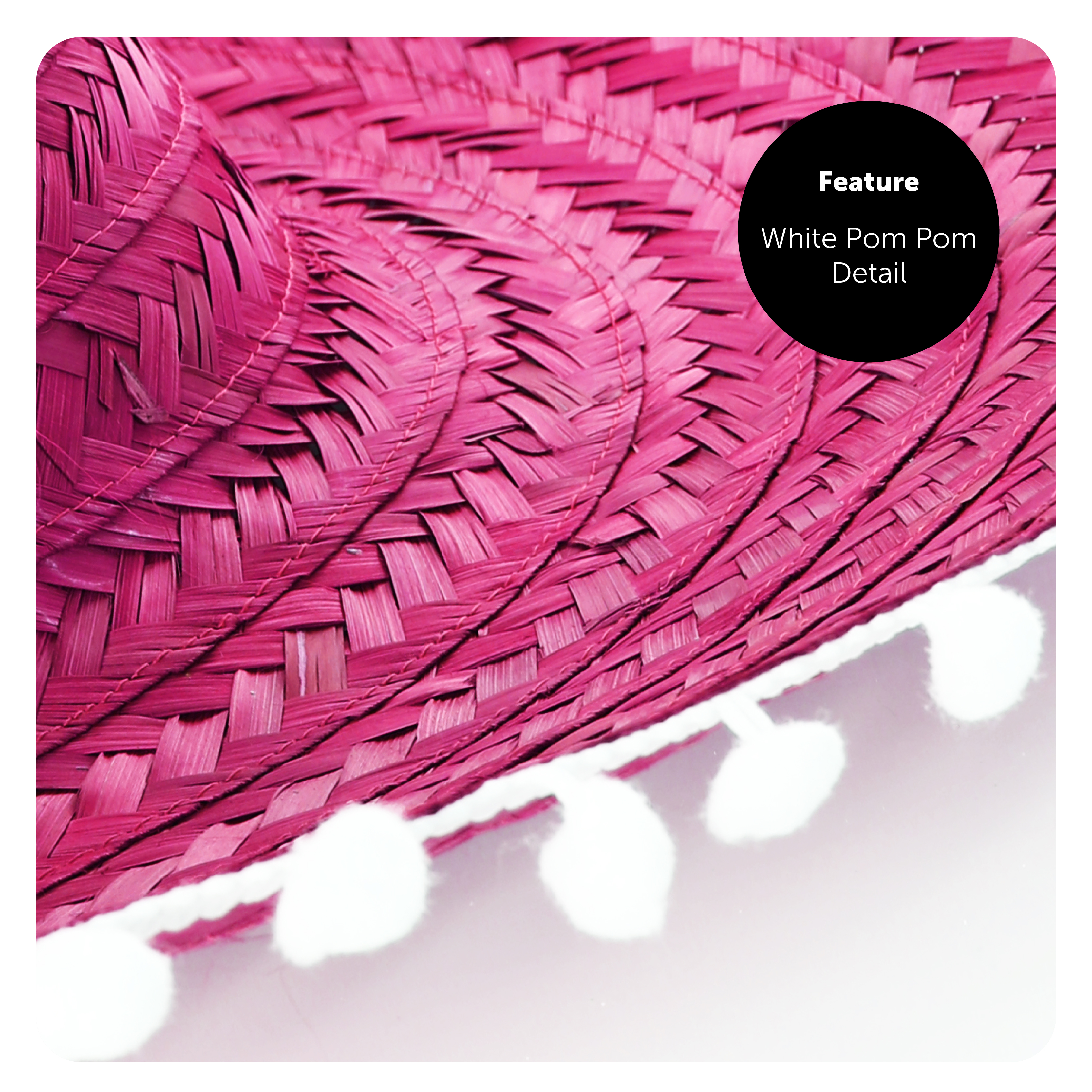 PINK POM-POM SOMBRERO HAT: Take the fiesta and life of the party with you whether you go for your next big event or occasion with our Pink Pom-Pom Sombrero Hat and liven up any party or gathering!