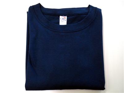 The garment featured is a full cut, short sleeve and reinforced rib collar. Hemmed sleeves and bottom. Easy machine washing
