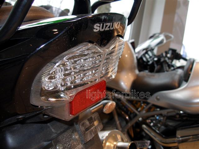 Road legal clear LED-Taillight fits Bandit 600, 00-05 and Bandit 1200, 01-05! Complete unit with red lighting diods integrated, for simply exchange! Integrated (white) licence plate illumination. Brandnew item!
