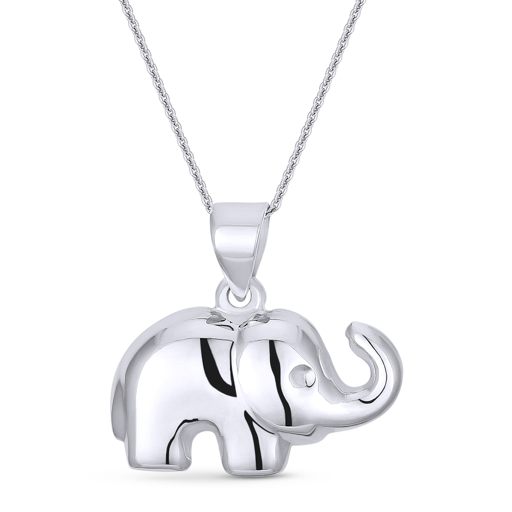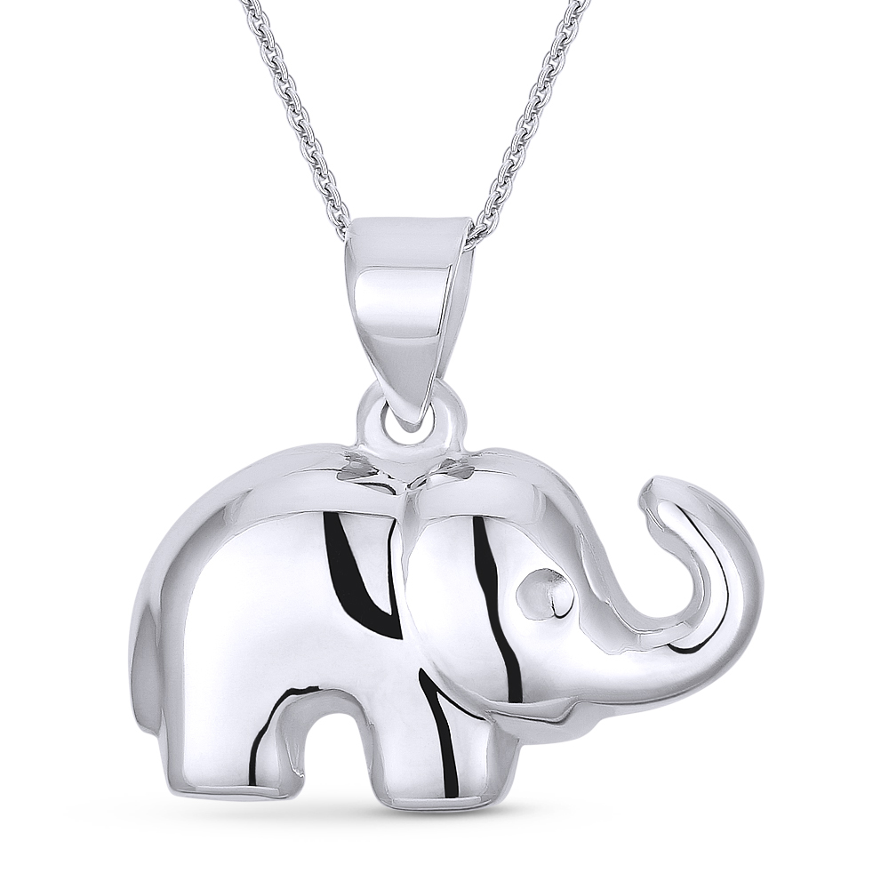 The featured pendant is cast in .925 sterling silver and showcases a 2-sided hollow elephant charm finished with a sturdy bail that can accommodate most chain sizes.