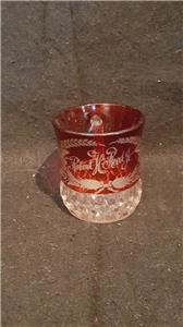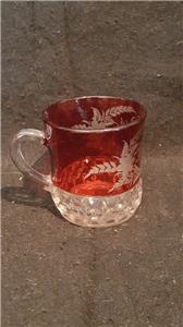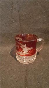 Eapg ruby stained flash glass souvenir cup mug engraved flowers Robert Reed
