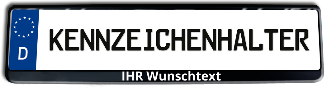 Hochwertige individuell bedruckte schwarze Kennzeichenhalter aus Polystyrol gefertig in der EU. |