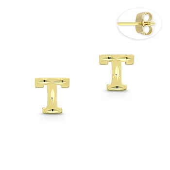 Initial Letter "T" Stud Earrings with Push-Back Posts in 14k Yellow Gold