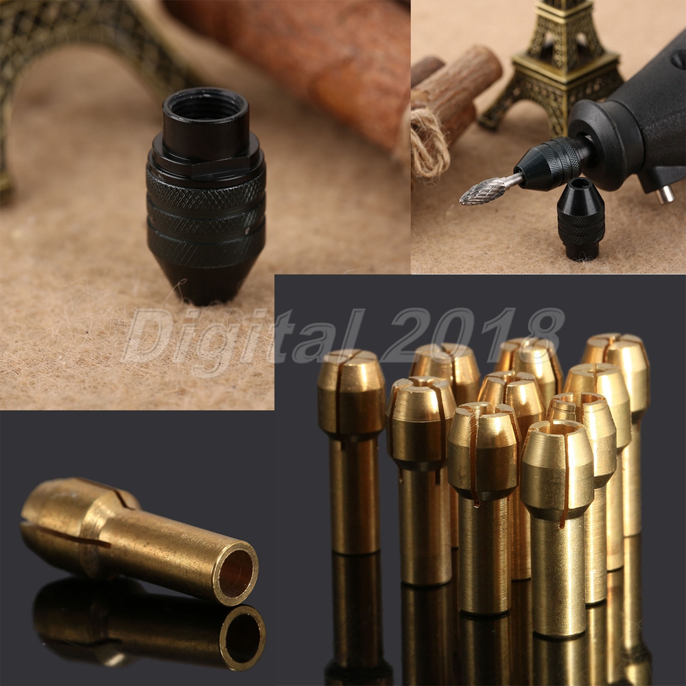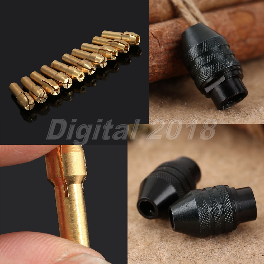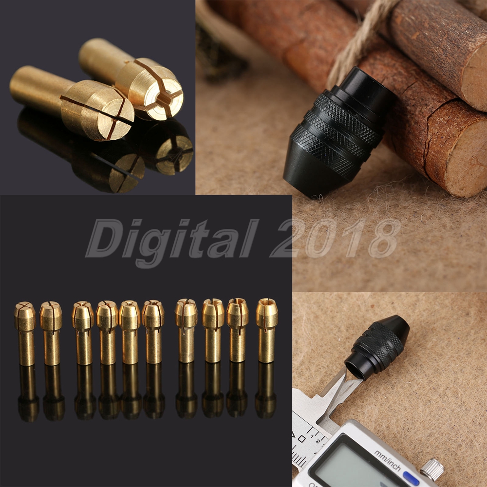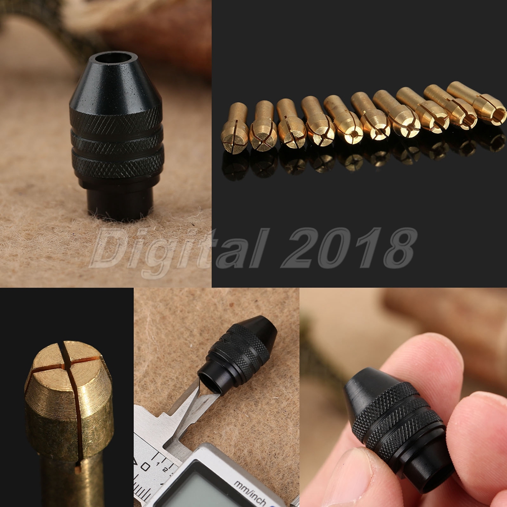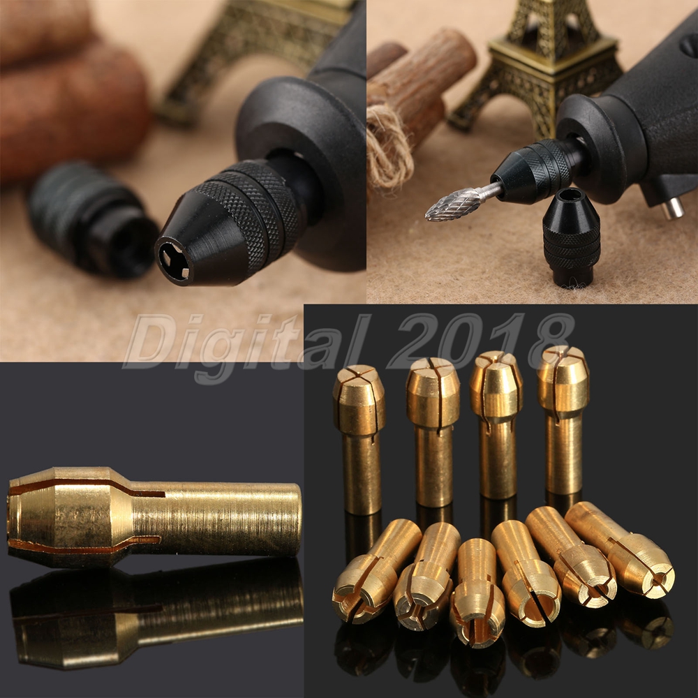 1 Set(10pcs) x 0.5mm-3.2mm Brass Collets Tools.