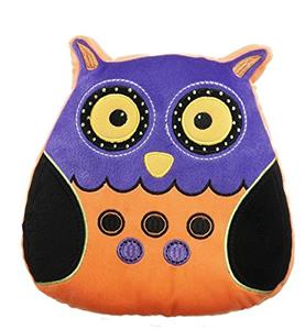 Cute bright owl pillow from Ganz. Polyester, 11 inches tall.