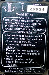 QUANTUM INSTRUMENTS BT-44 ELECTRONIC GAS LEAK DETECTOR
