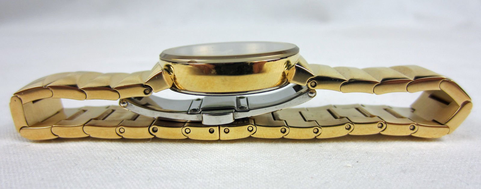 Yellow gold PVD stainless steel case and bracelet.