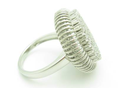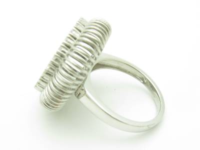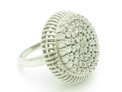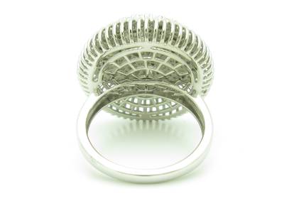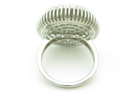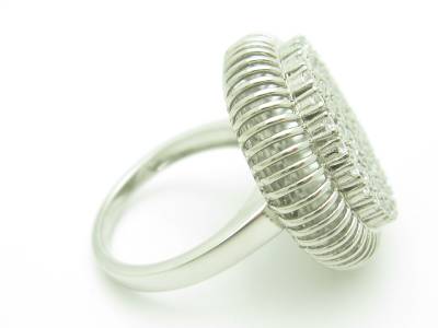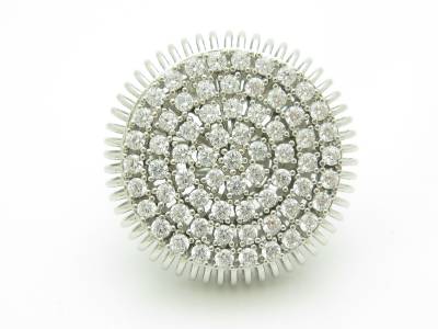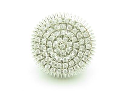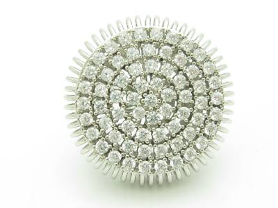 PLATINUM STERLING SILVER DIAMOND SET WHITE SAPPHIRE UNIQUE DOME SUNBURST RING