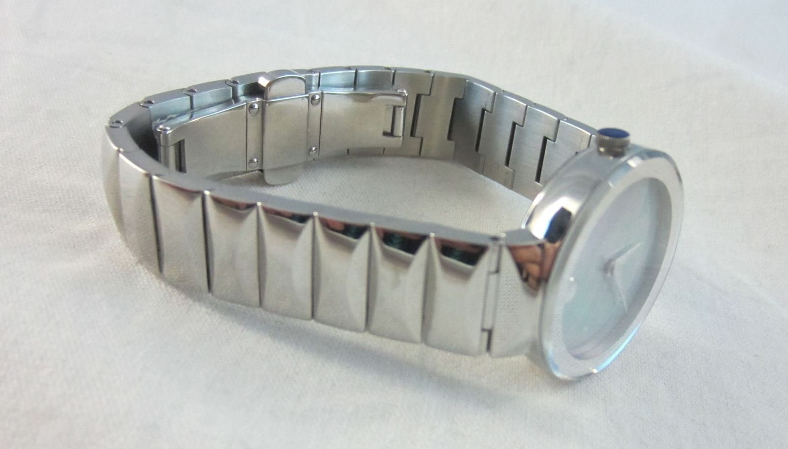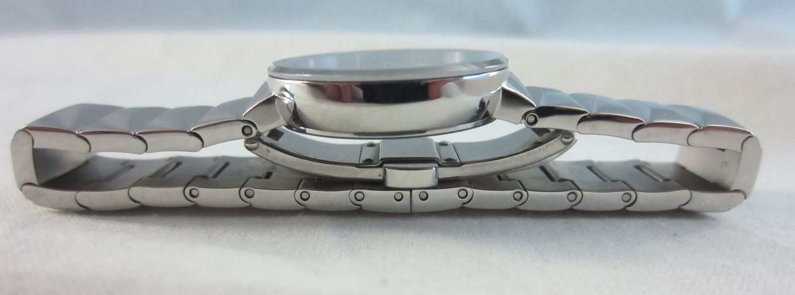 faceted link bracelet with butterfly deployment clasp., 3 ATM, Swiss