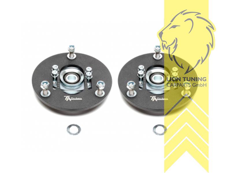 Unsere Uniball Domlager werden anstatt dem Seriendomlager montiert. Sie sind leichter, beheben das störende Mitfedern der originalen Domlager und verbessern das Einlenkverhalten des Fahrwerks in Kurven signifikant. Serienmäßige Domlager sind auf Fahrkomfort ausgelegt. Stöße können vom Original Domlager absorbiert werden. Unsere Uniball Domlager sind komplett aus Aluminium gefertigt und leiten alle Stöße direkt an das Fahrwerk weiter. Da nun jede Federbewegung definiert über das Federbein läuft, erhöht sich auch der mechanische Grip des gesamten Fahrwerks. Es müssen allerdings Komforteinbußen in Kauf genommen werden.- enorme Verbesserung des Fahrverhaltens