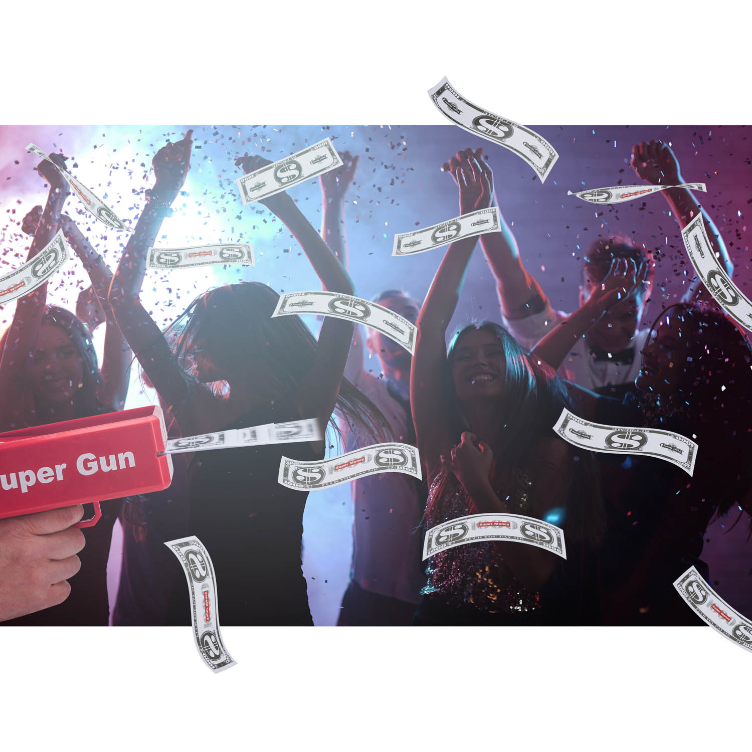 die dich auf jeder Party zum begehrtesten Gast macht! Dieser Geldschein-Werfer ist dein Weg zum Ruhm. Stell dir vor, du stehst