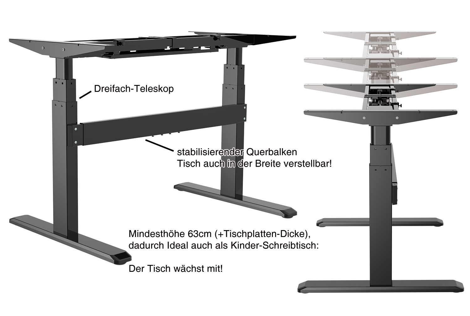Elektrisches höhenverstellbares Exeta ergroPRO Tischgestell in schwarz für gängige Tischplatten
