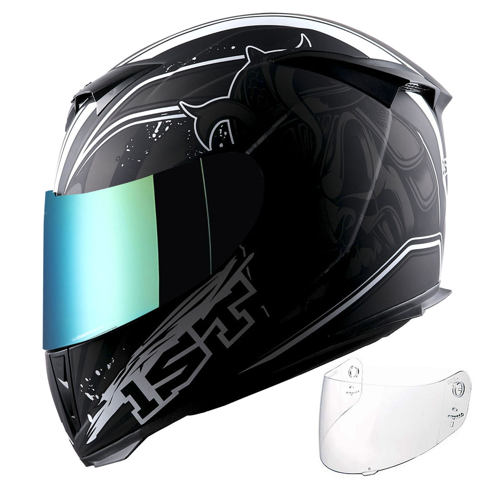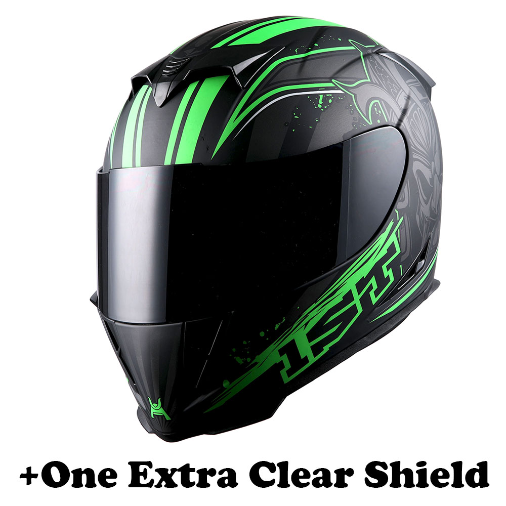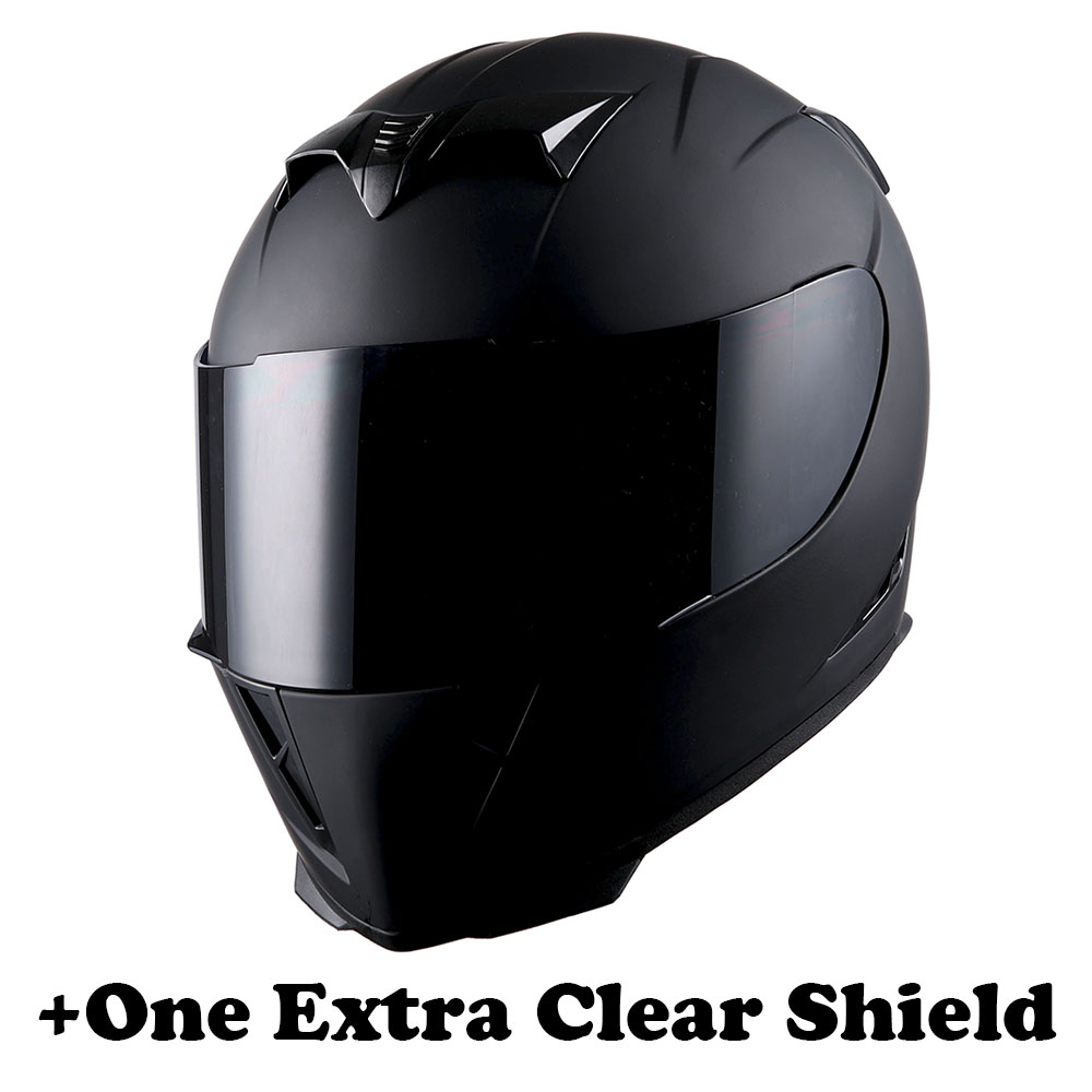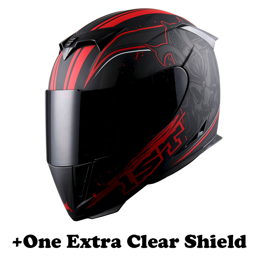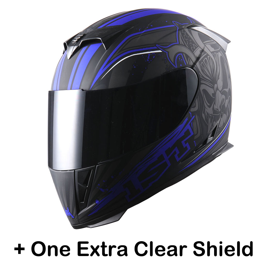 1Storm Motorcycle Full Face Helmet Matt Skull King + One Extra Clear Shield |