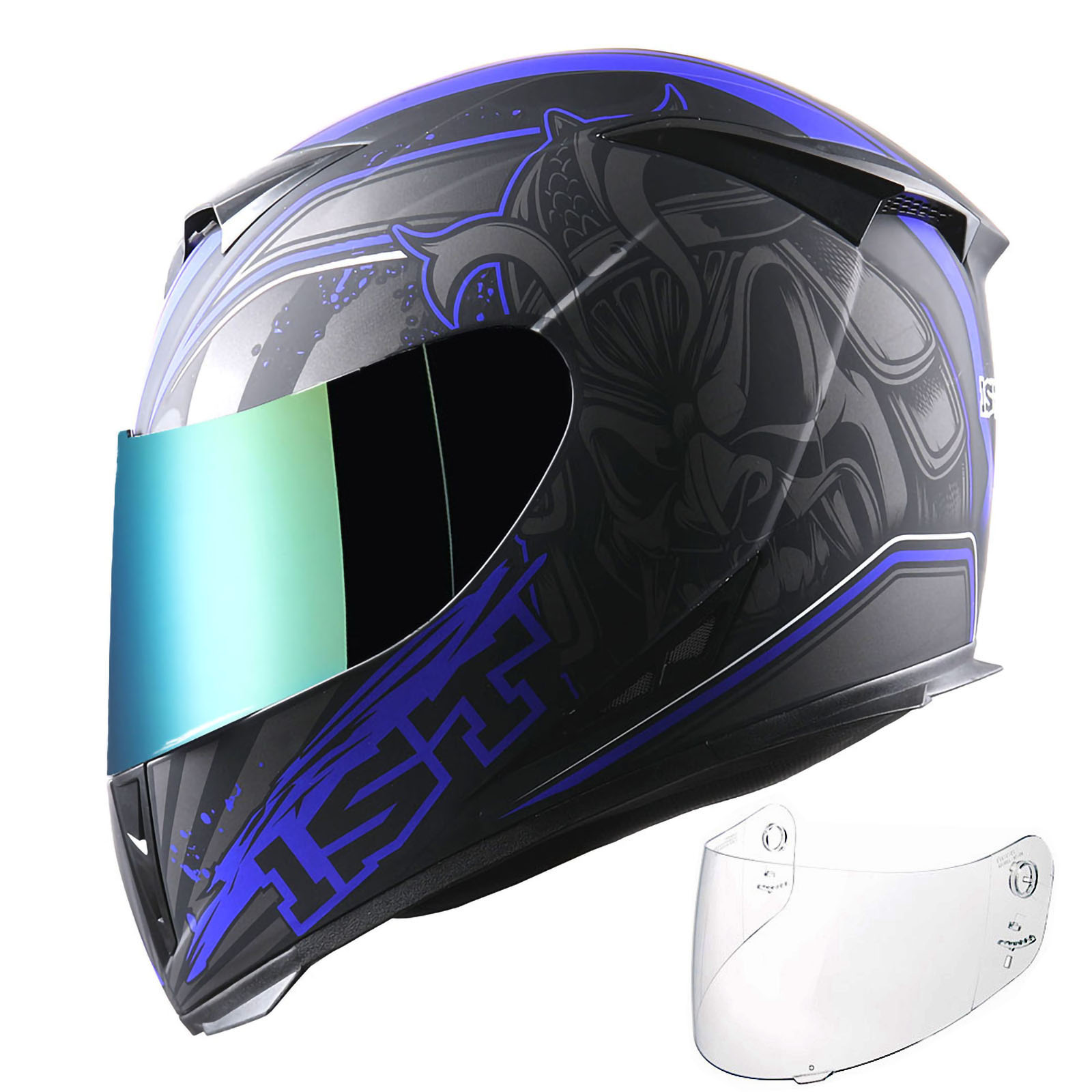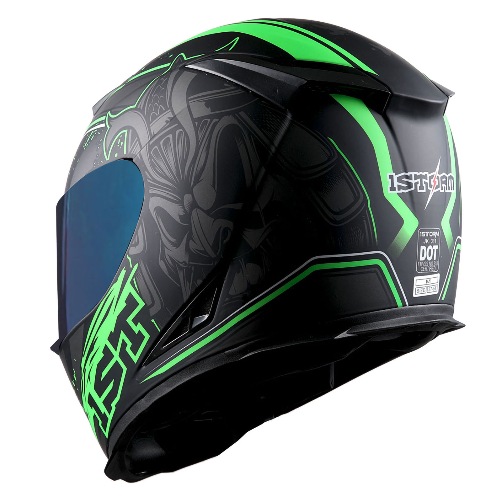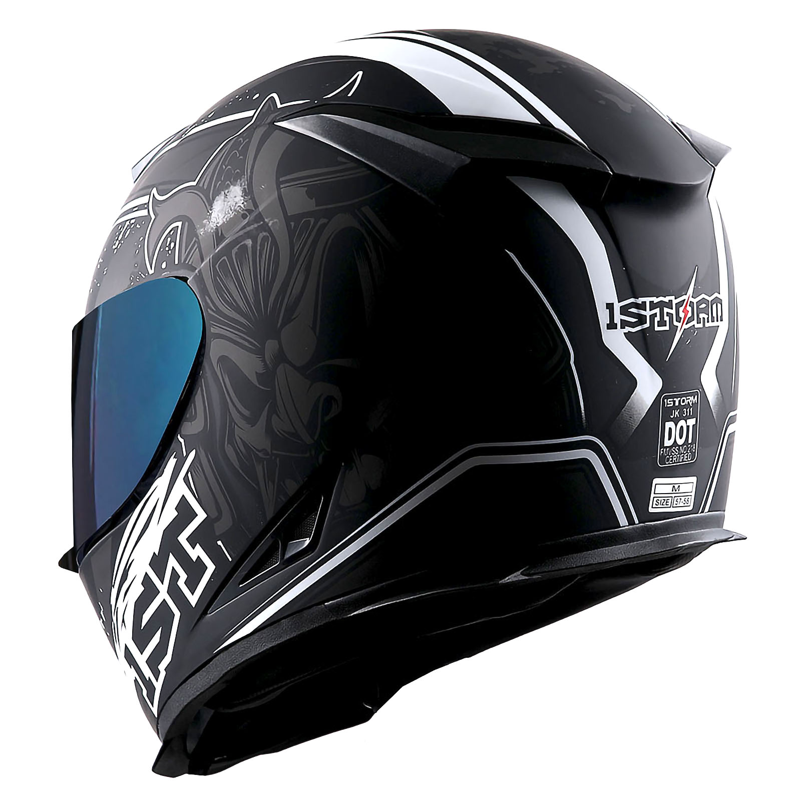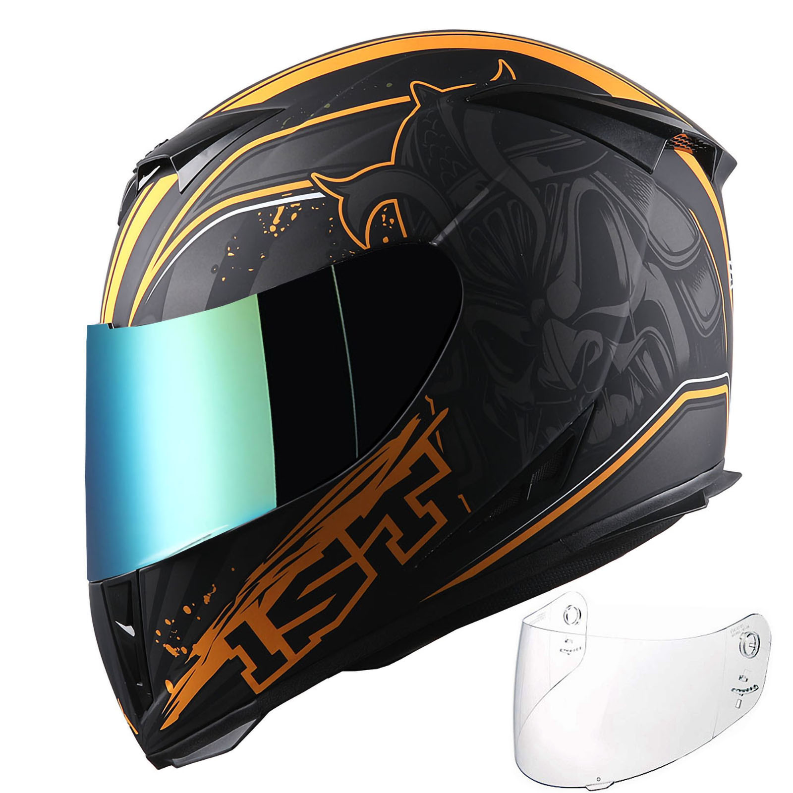 1Storm Motorcycle Full Face Helmet Matt Skull King + One Extra Clear Shield |