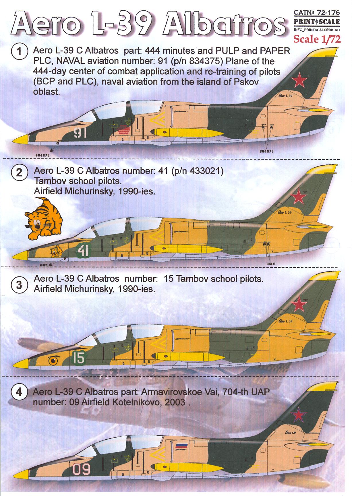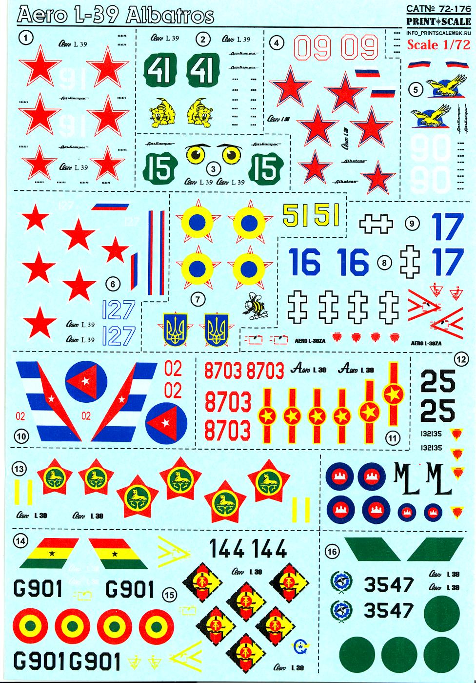 Offered for sale is a 1/72-scale set of decals for the Czech Aero L-39 Albatros jet trainer, made by Print Scale Decals.