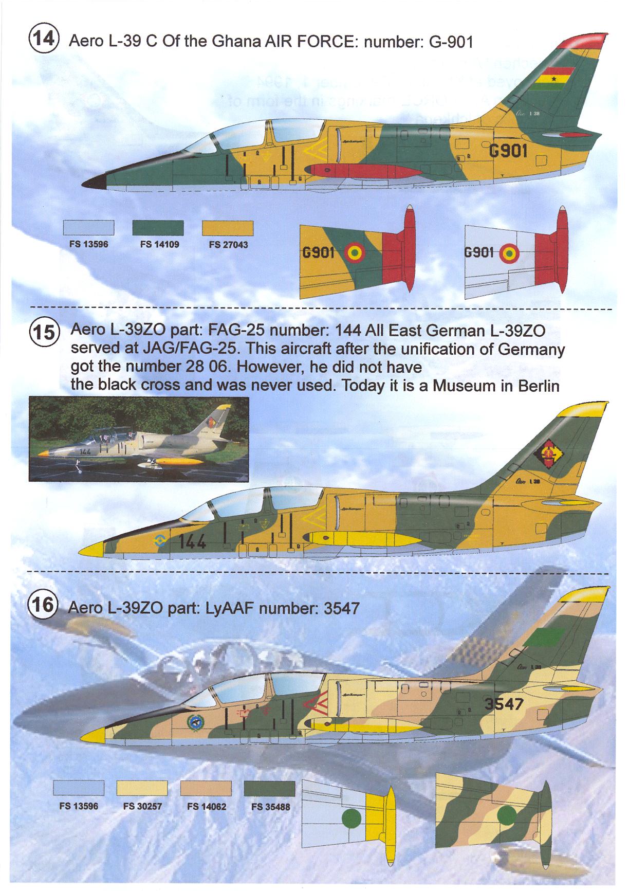 This set includes markings for 16 DIFFERENT aircraft, including Russian, Ukranian, Lithuanian, Cuban, Vietnamese, Cambodian, Ghana, German, and Chechen versions!