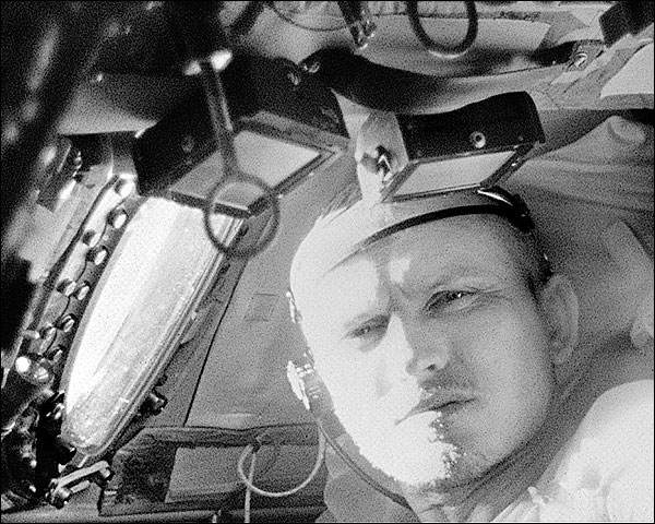 Frank Borman, NASA astronaut and Gemini-7 command pilot, performs visual acuity tests in space.