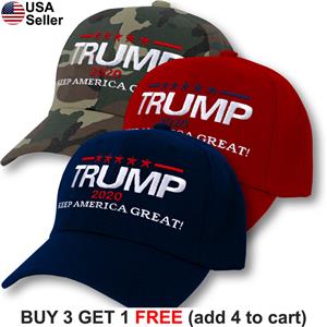 Various types of Trump, caps, & other logo apparel are also available
