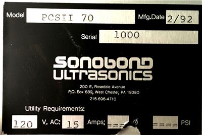 SONOBOND PCSII70 ULTRASONIC GENERATOR 120 VAC @ 15 AMPS - SOLD AS IS