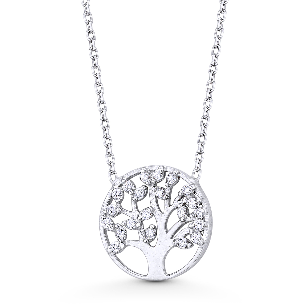 Tree-of-Life / Knowledge Etz Chaim Cubic Zirconia CZ Crystal Charm Pendant & Chain Necklace in .925 Sterling Silver w/ Rhodium