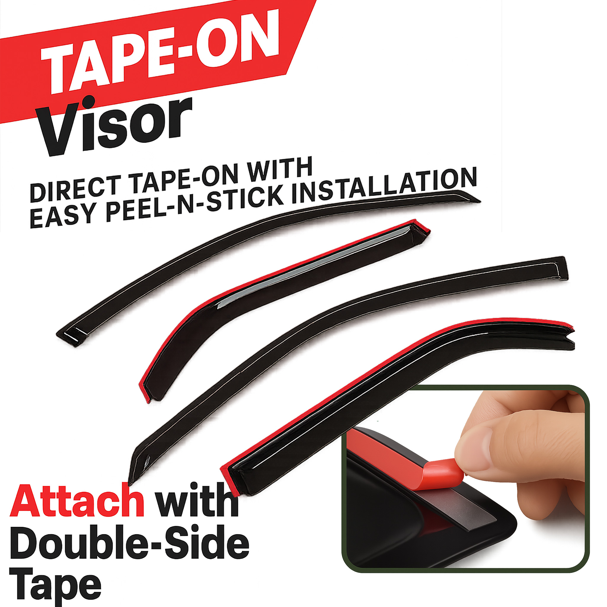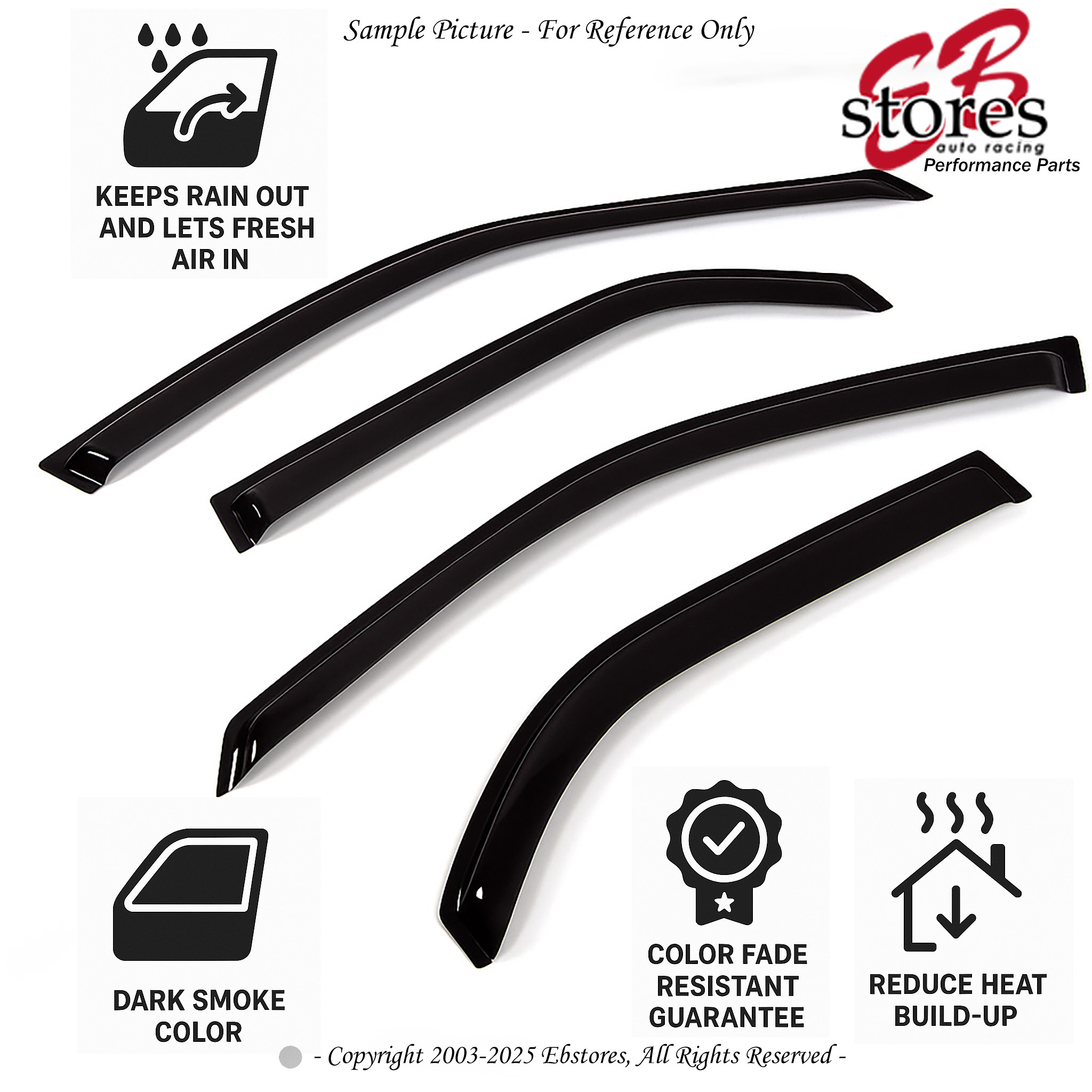 Made from reinforced acrylic with a sleek dark smoke finish. These vent visors help keep rain out while allowing fresh air in, and reduce heat buildup when parked by letting windows stay slightly open.