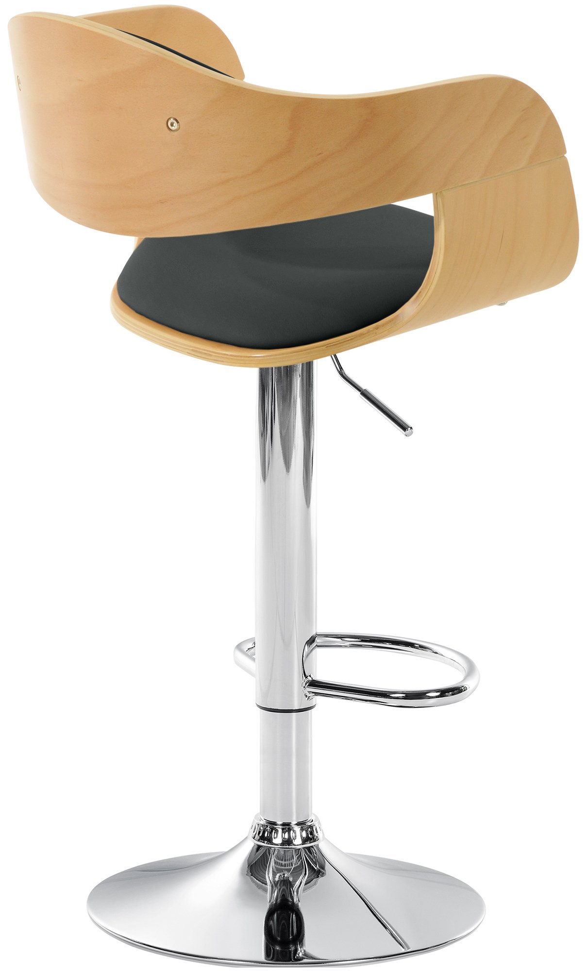 Um immer die optimale Sitzposition zu finden, ist der mühelos in der Höhe verstellbare und um 360 Grad drehbare Barhocker ideal. Für zusätzlichen Komfort verfügt der Barhocker über eine integrierte Fußstütze, die eine angenehme und aufrechte Sitzhaltung unterstützt.