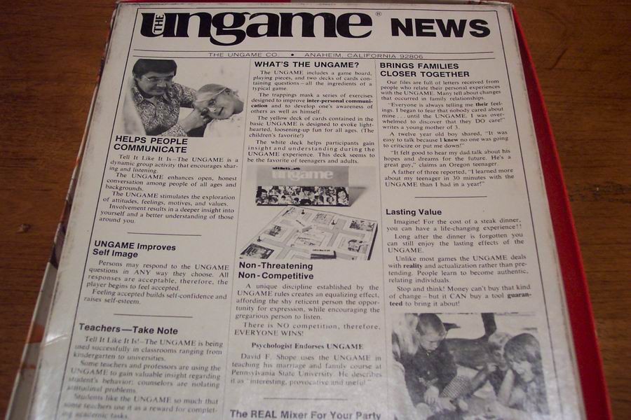This is a The Ungame Christian Version BOARD GAME From 1975. It is in Great Condition. Box has some wear, from use, but nothing major. It is Complete with all the pieces. Combine auctions to save on shipping. AG
