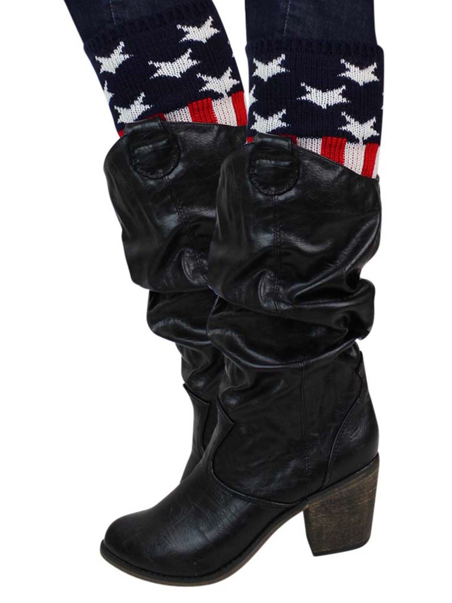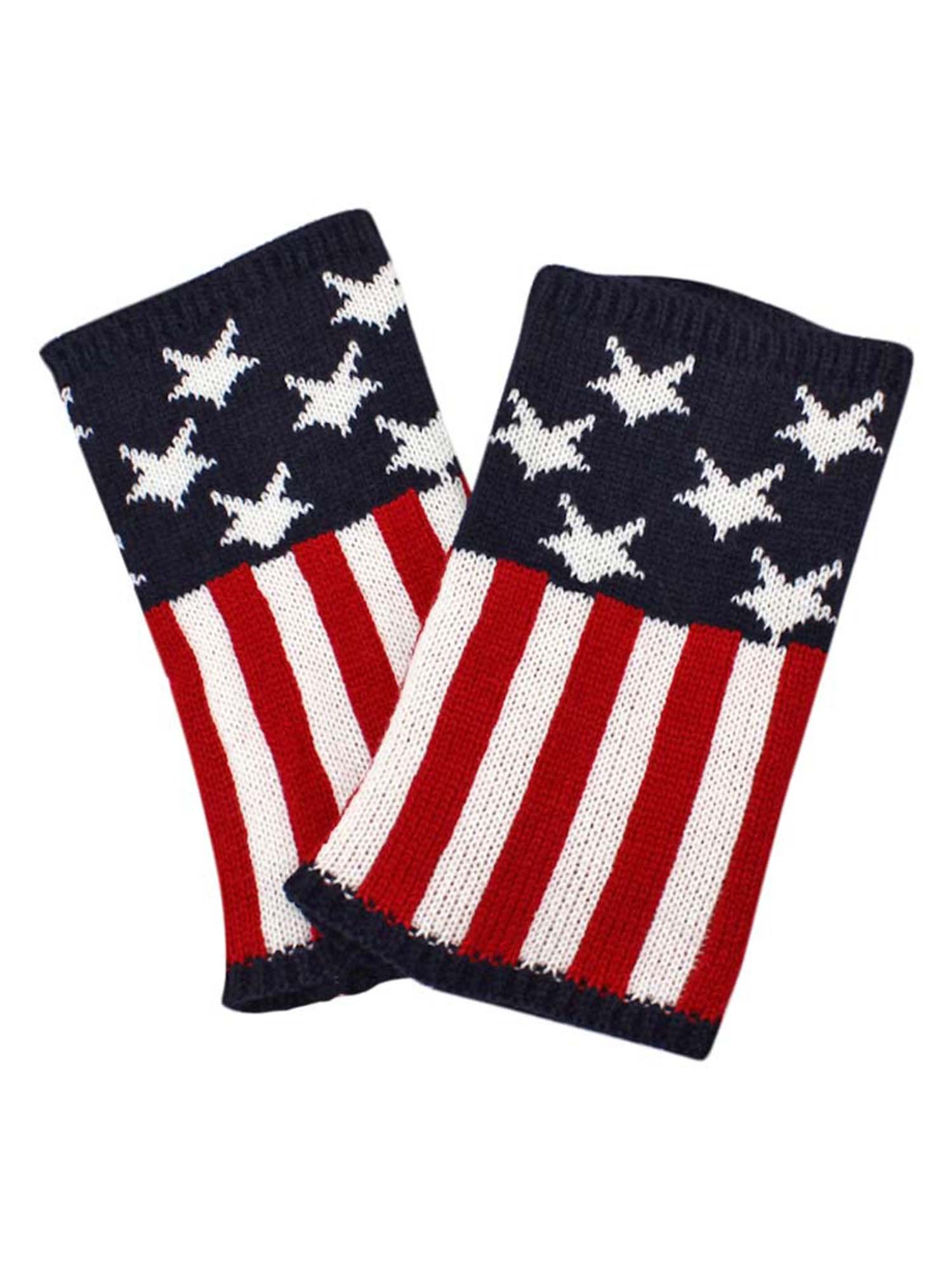 One size fits most, these red white and blue patriotic boot cuffs make a great gift or holiday stocking stuffer.