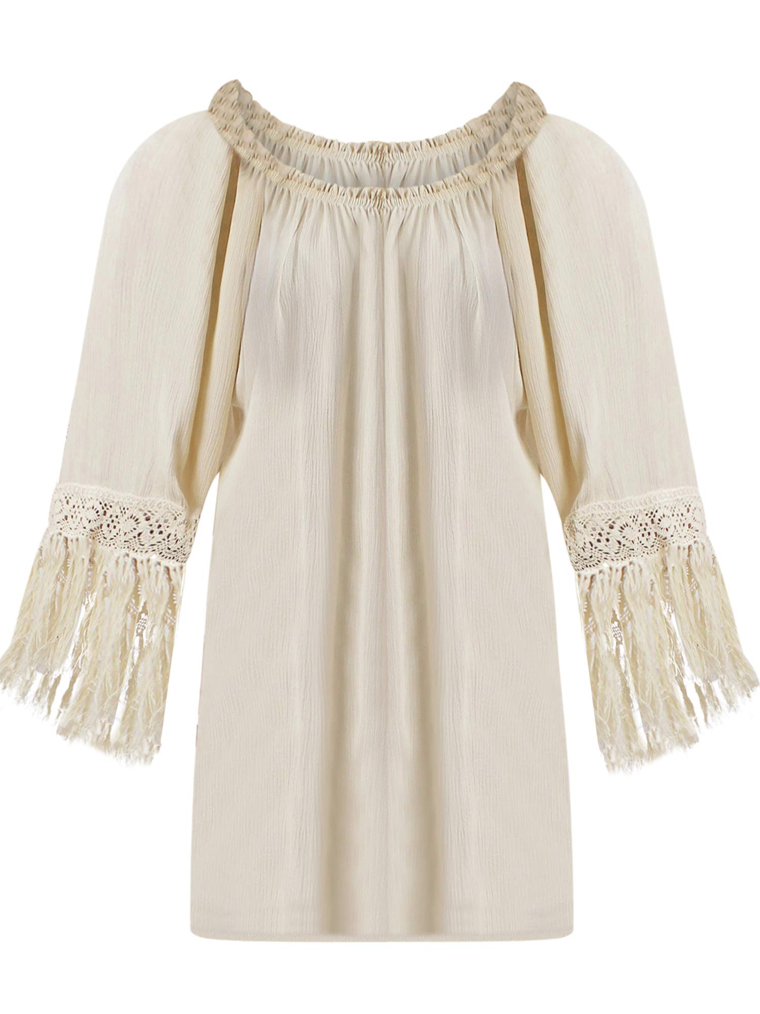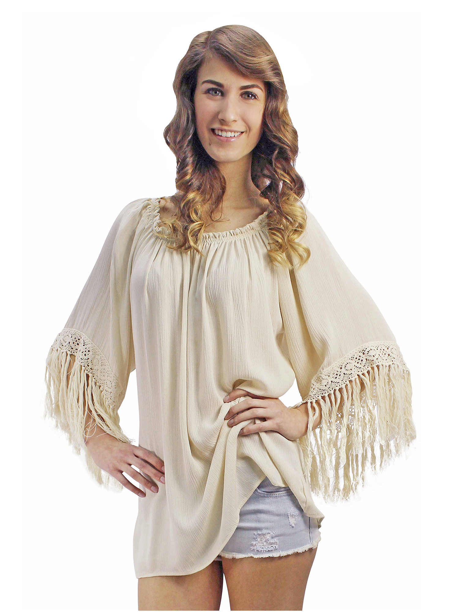 | Measurements | Top measures 28.5 inches from shoulder to bottom edge. From armpit to armpit measures 22 inches. Fringe is 5.5 inches long. |