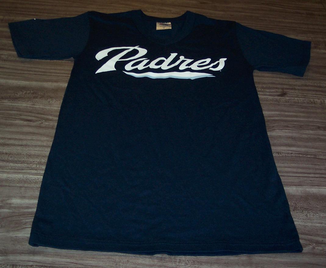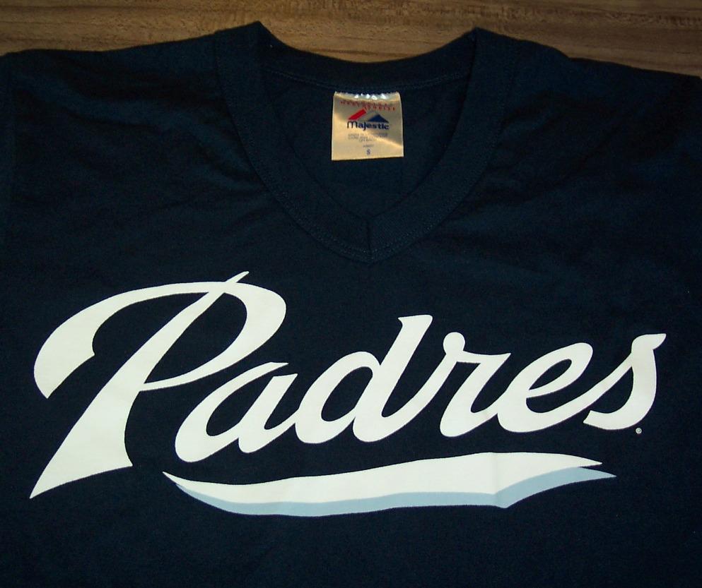 This is a SAN DIEGO PADRES MLB BASEBALL T-shirt. It is a size SMALL and it is NEW. It is 17 1/2 inches from armpit to armpit and 30 inches in length. It is an official MAJESTIC Shirt. Combine auctions to save on shipping. AD